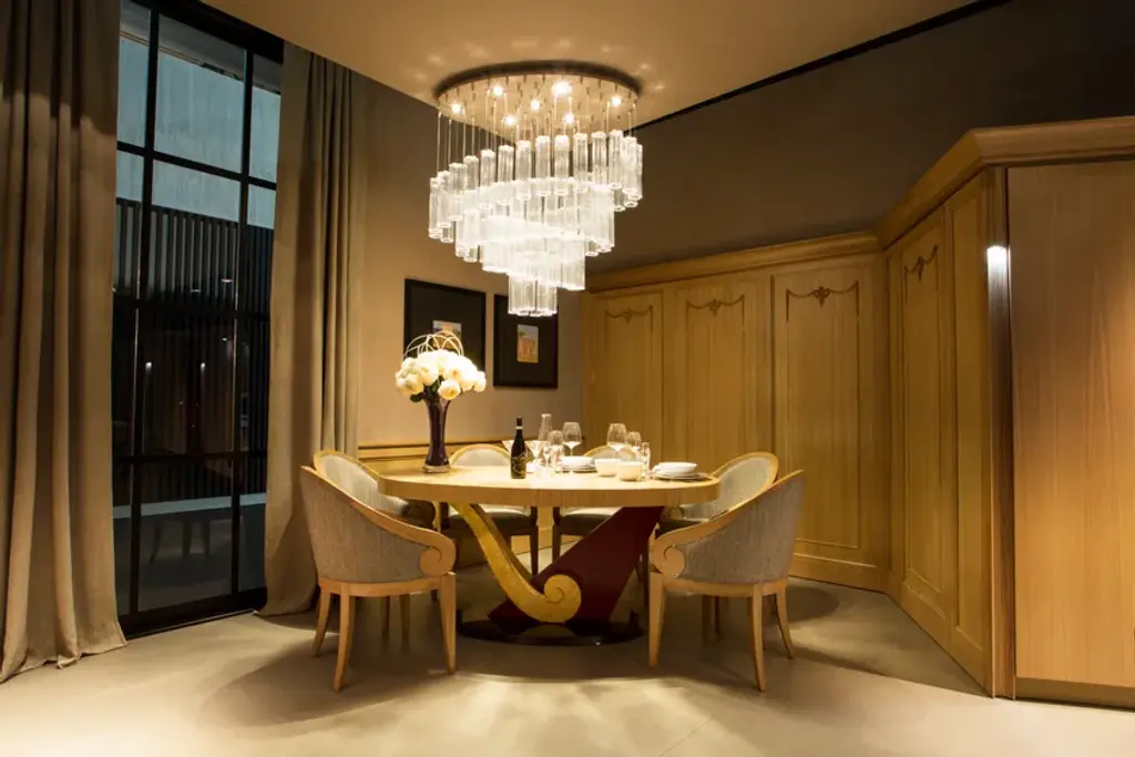 Light source: 7 x GU10 halogen energy saving - 7 x GU10 LED bulbs.The Murano glass shaped in timeless forms, in many colors, from origin to creations of contemporary and prestigious, to furnish as well as illuminate the spaces with extreme elegance.Available finishes: Polished chrome, glossy 24 carat gold, matt white.Murano glass colors: Transparent, Amber, Smoke, Blue, Green.