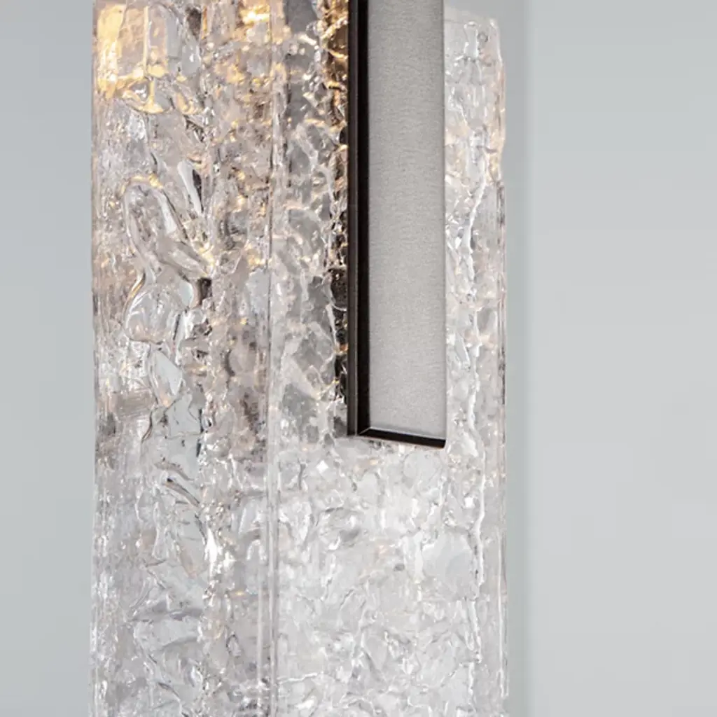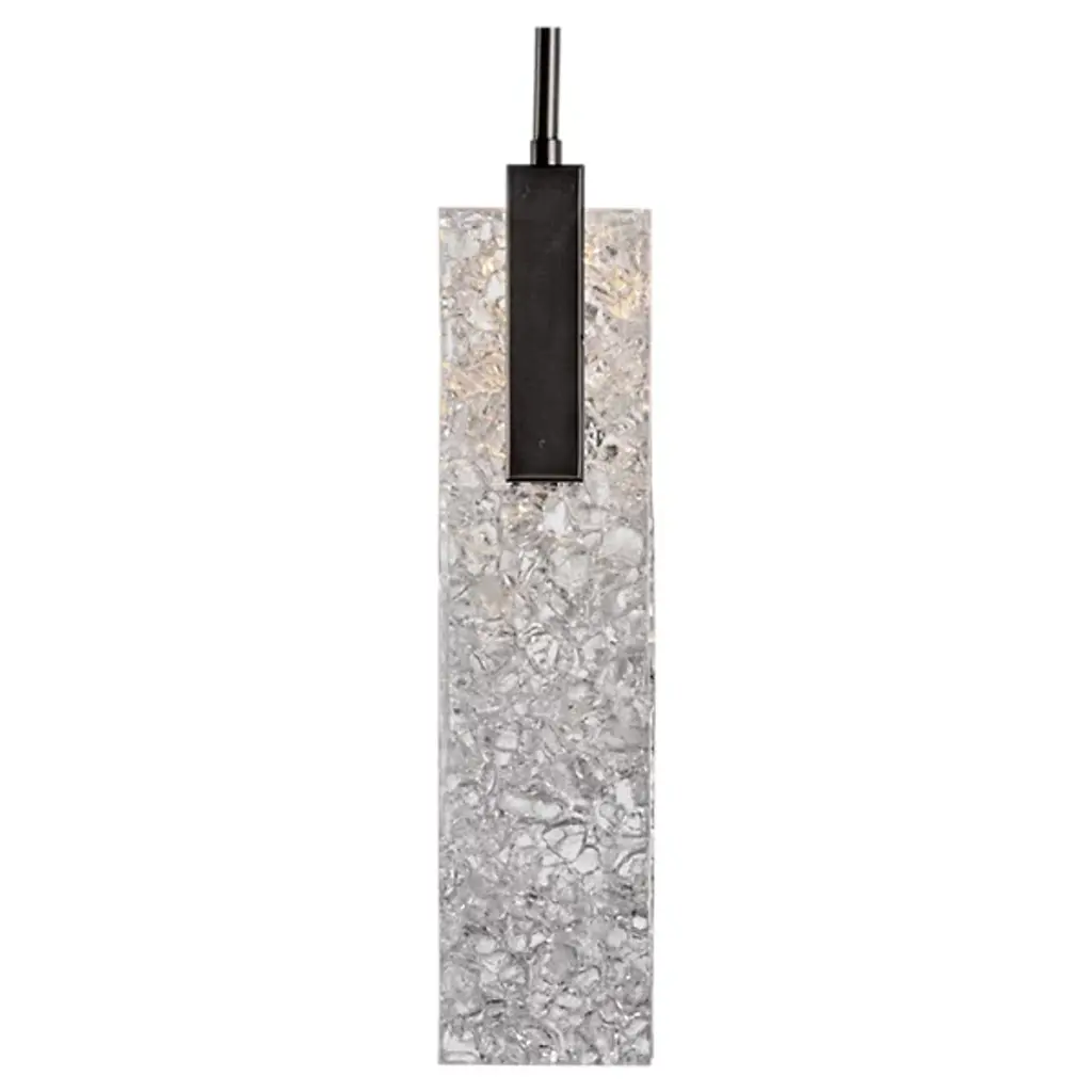 Crisp glass glazed in a seductive light. The handcrafted Glacier LED Pendant from Hammerton Studio drops into your room with an eye-catching warm and cool character. The pendant's slender suspension makes it ideal as a series over a table or a single in intimate space. A sleek metal accent emphasizes the pendant's refined modern aesthetic. The glass diffuser inside is made when artisans combine icy chunks of glass with a molten slurry. With no two being exactly alike, the glass diffuser stuns with texture and shimmering details. Turn it on and watch as light dances in warm reflections across the glass. The glass-filtered light gives the room a comforting ambiance.