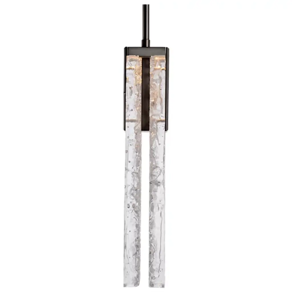 Crisp glass glazed in a seductive light. The handcrafted Glacier LED Pendant from Hammerton Studio drops into your room with an eye-catching warm and cool character. The pendant's slender suspension makes it ideal as a series over a table or a single in intimate space. A sleek metal accent emphasizes the pendant's refined modern aesthetic. The glass diffuser inside is made when artisans combine icy chunks of glass with a molten slurry. With no two being exactly alike, the glass diffuser stuns with texture and shimmering details. Turn it on and watch as light dances in warm reflections across the glass. The glass-filtered light gives the room a comforting ambiance.