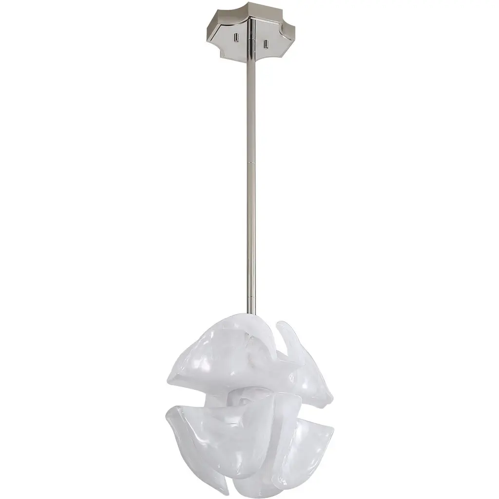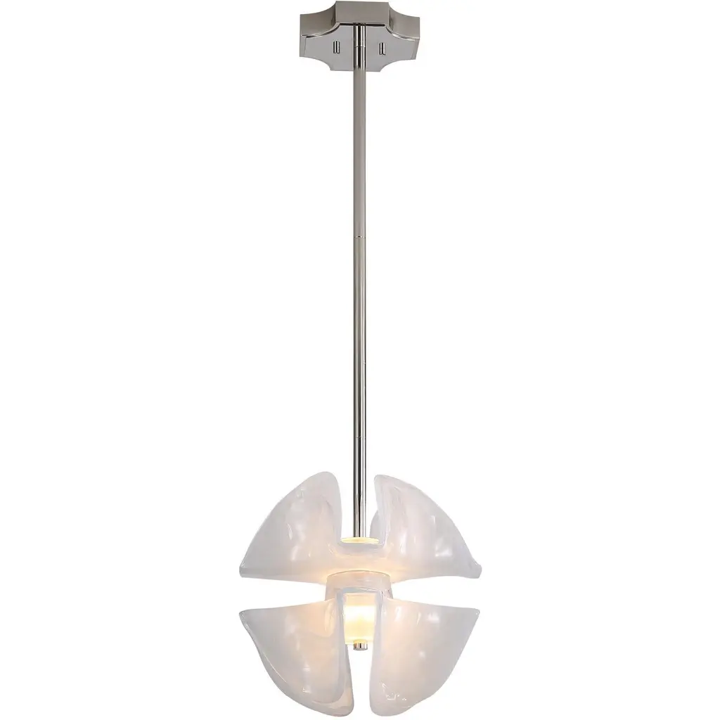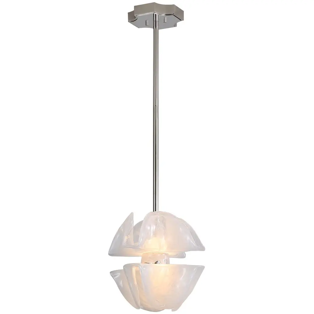 Bring modern elegance into your home with the Golden Lighting Glacier Integrated LED Pendant in Polished Nickel. Featuring a glass shade and a polished nickel frame, it creates a welcoming atmosphere.The icy glass shade embraces the artistry of handcrafted glass, where molten glass is shaped to emulate the beauty of ice, creating an ambient glow that enchants any space. Offering a luxurious and sophisticated shine, the Polished Nickel finish is crafted through a durable electroplating process. Its mirror-like surface reflects light beautifully, adding a touch of heirloom quality to your decor.Perfect for focused yet decorative illumination, this pendant is ideal for indoor spaces like kitchens, dining rooms, and entryways. Rated for dry locations, it is designed for areas away from moisture. You can customize its length with an adjustable height that ranges from 16.75" to 52.75". With overall dimensions of 13.75"W x 15.25"H x 13.75"D, this pendant utilizes integrated LED technology, providing brilliant, energy-efficient illumination with a warm 3000K glow and a remarkable 2160 rated lumens.Elevate your space with this stunning example of modern lighting quality, making it not just a light fixture, but a work of art.
