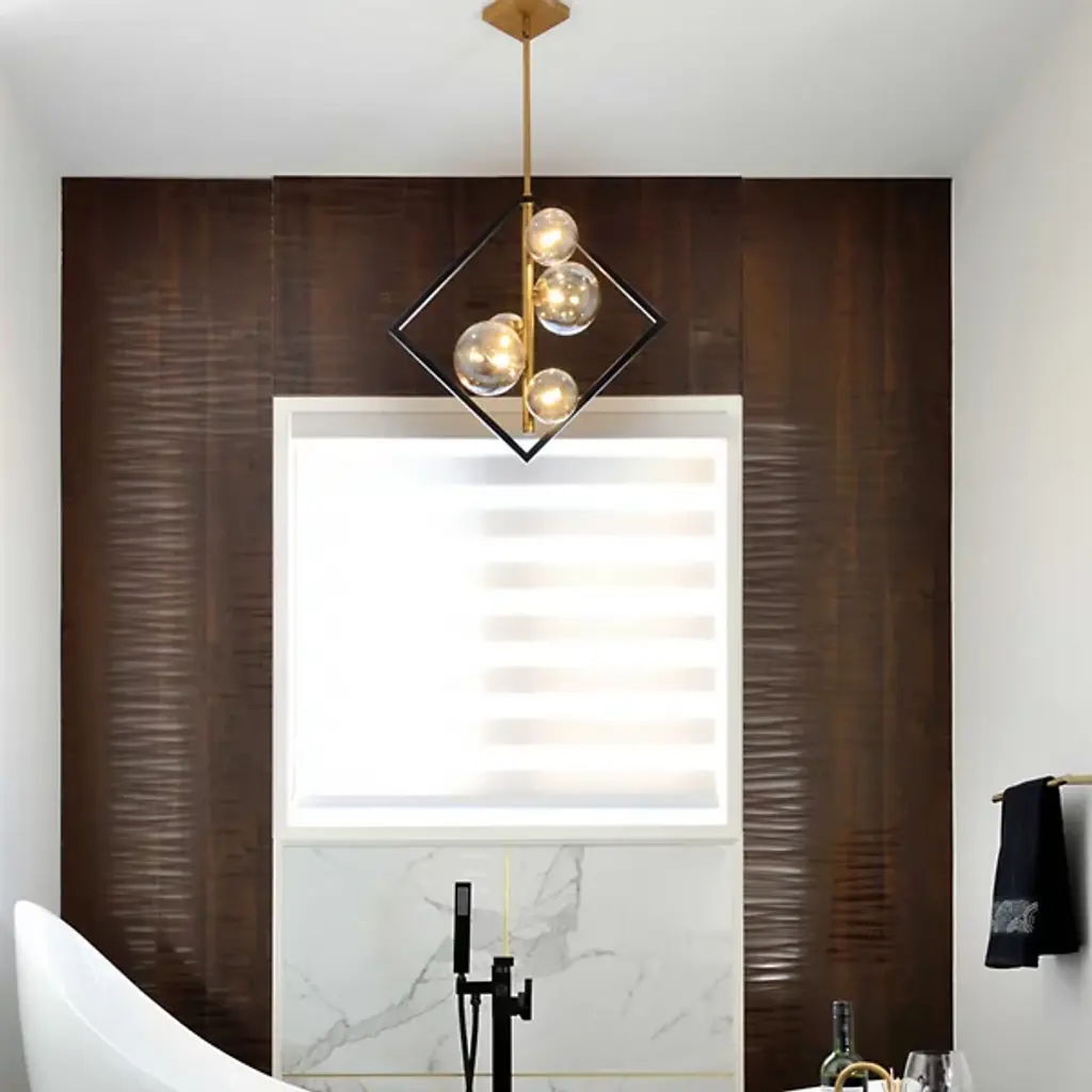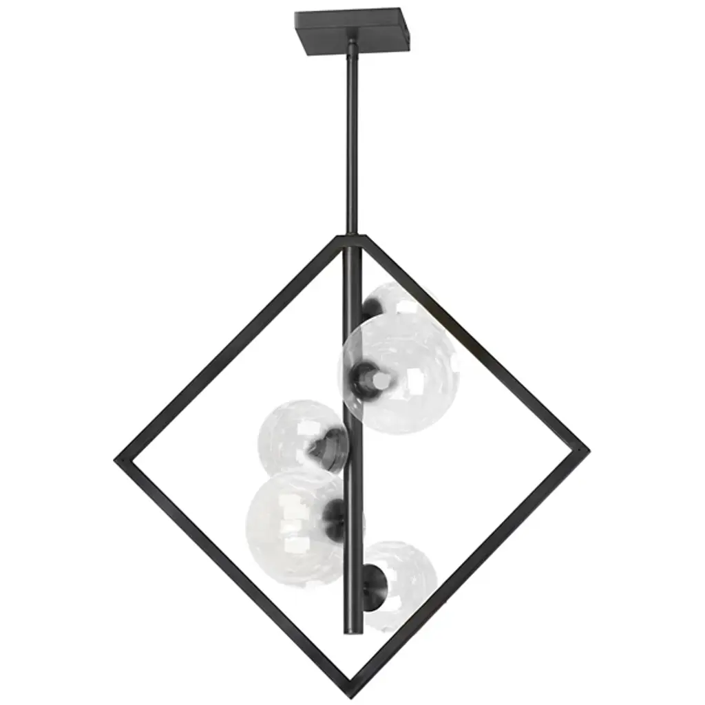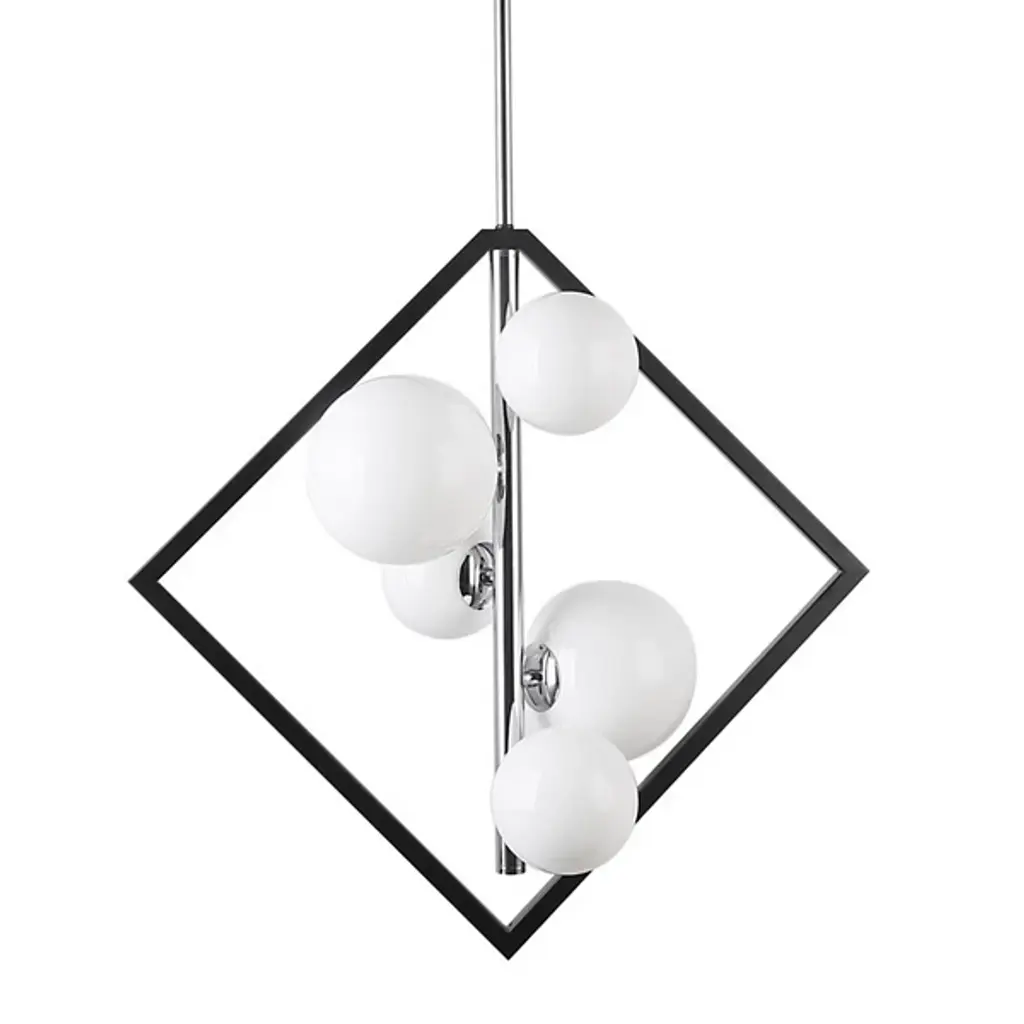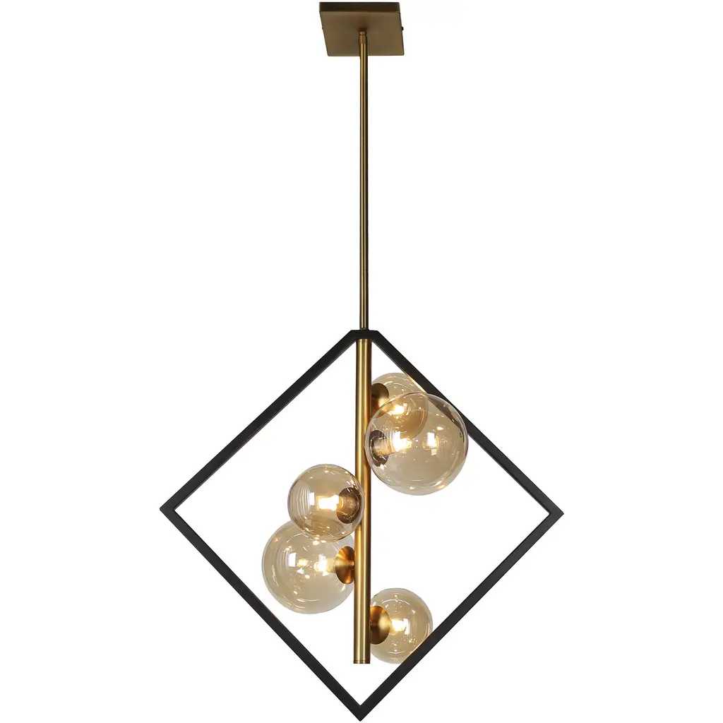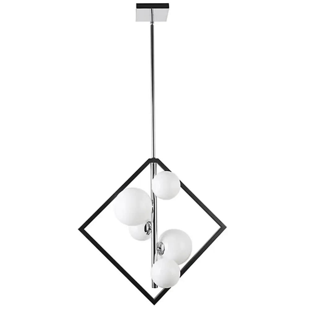 The Glasglow Multi-Light Pendant by Dainolite adds a lovely and defining touch to spaces. From a single down rod, a sleek diamond form frames an array of spherical glass shades. Set around the single stem, these globes diffuse an even layer of illumination onto surroundings while creating a playful composition. A lovely mix of finishes dresses up this pendant, keeping it contemporary as it lends a fun and functional touch to the rooms it brightens.