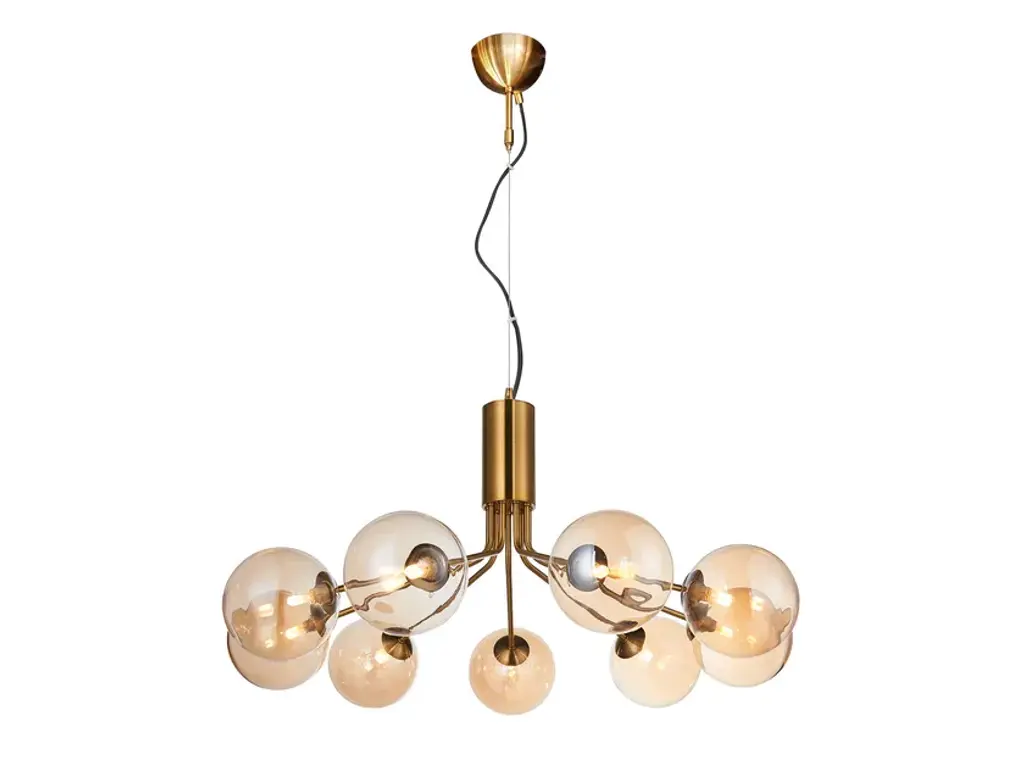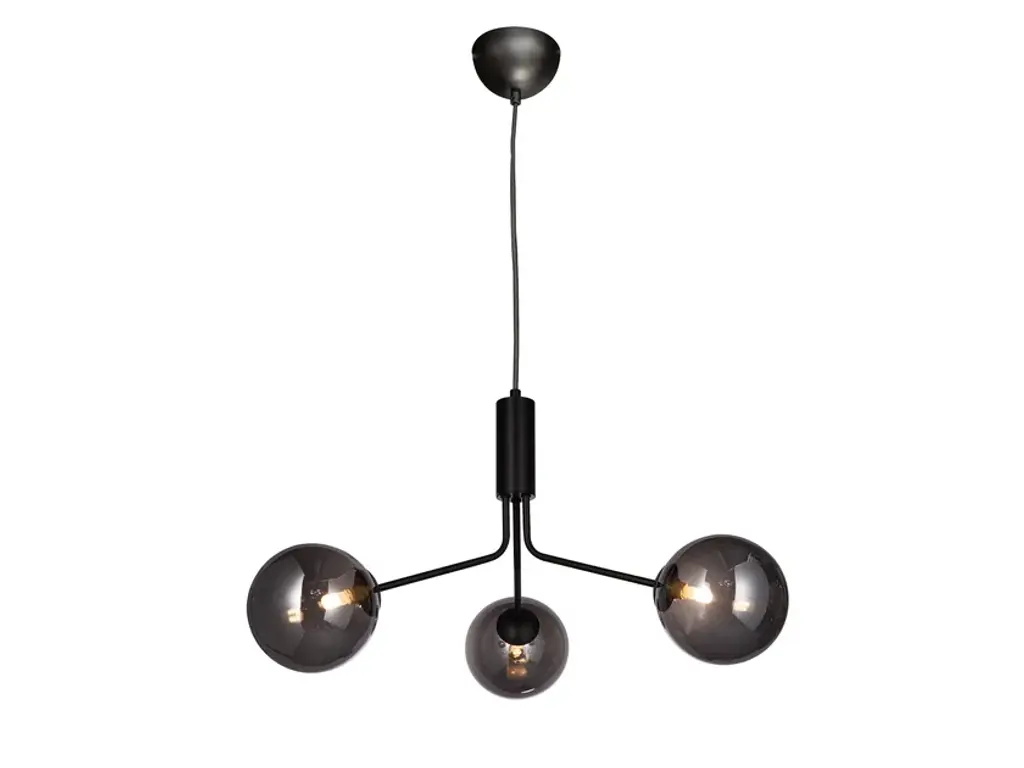 GLASGOW 3 is a metal LED pendant lamp with 3 glass spheres (champagne or dark grey) from the GLASGOW collection.3 x G9 LED, max. 5WThe Glasgow light family is distinguished by its captivating spherical glass shades encircling each bulb. The standout Glasgow 9 pendant boasts an impressive nine light points, creating a striking visual impact with its substantial diameter. For a lighter touch, explore the Glasgow 3, featuring three shades, or the Glasgow 5 Vertical, where shades gracefully spiral down the pendant's body. All three models are available in two sophisticated color combinations: brass/champagne and black/smoked glass. Extend your lighting options with the Glasgow product family, now featuring table, floor, and wall lamps to effortlessly fulfill all your lighting needs.