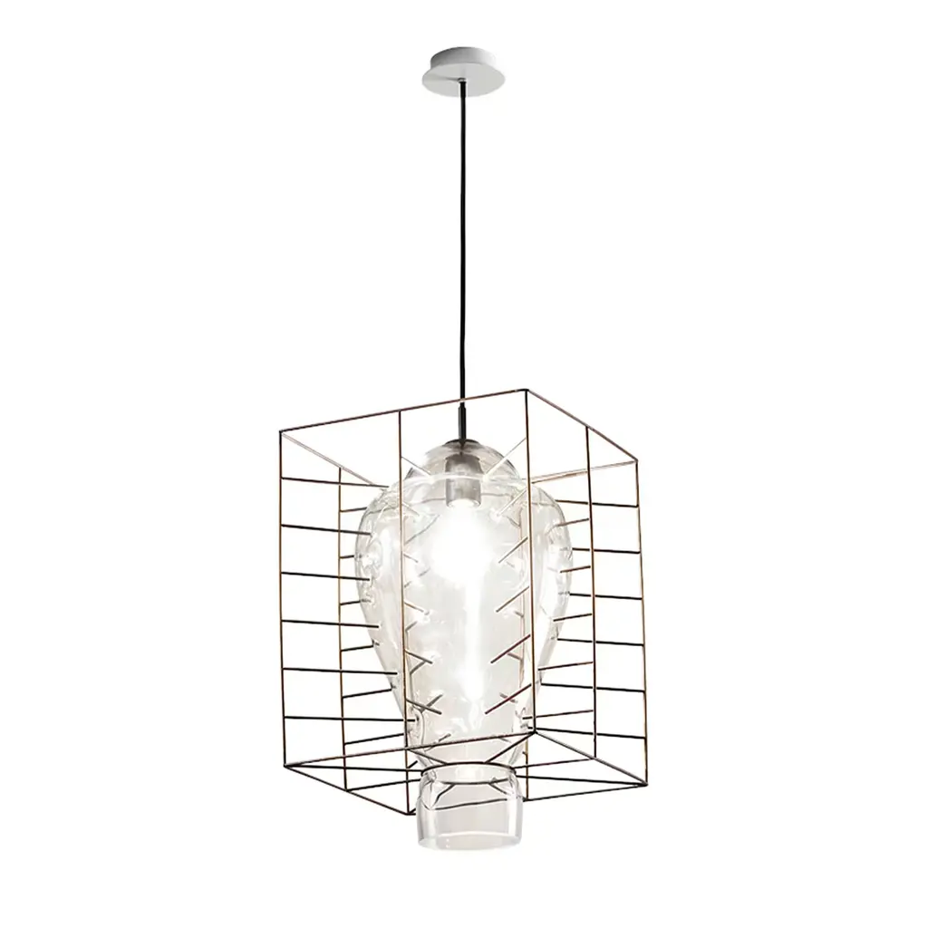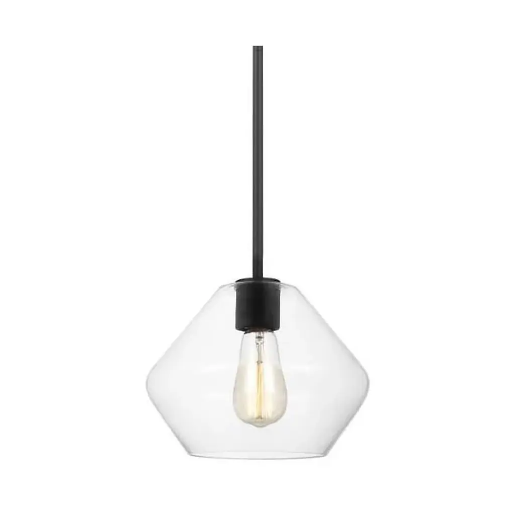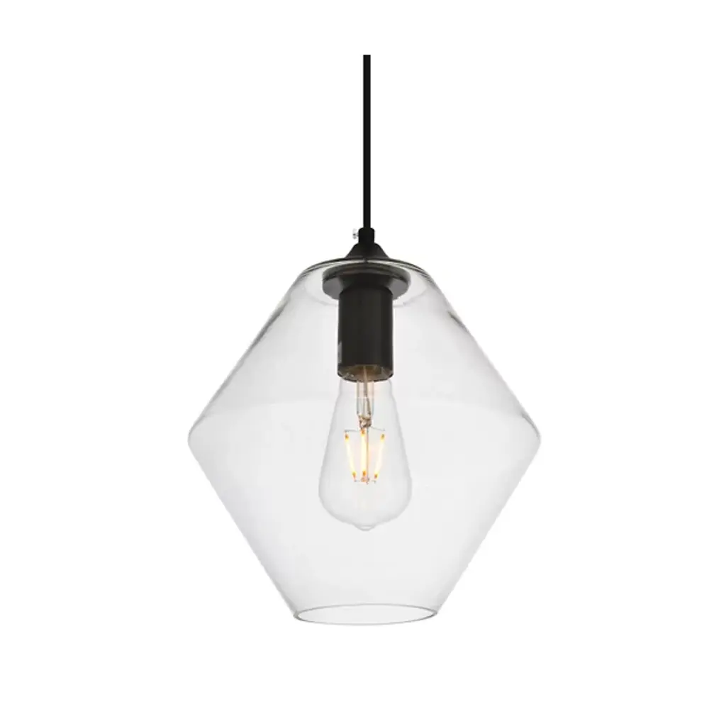 The striking geometric design of the Glasgow Pendant by Dainolite enhances modern spaces as it brightens. A slender downrod drops from a circular canopy to hold a globe-shaped shade made of glass. A square open frame surrounds the shade; its sharp and angular silhouette bringing balance to the softness of the rounded glass. Its warm light provides a delicate ambient light while transforming the ambiance into a more intimate space.