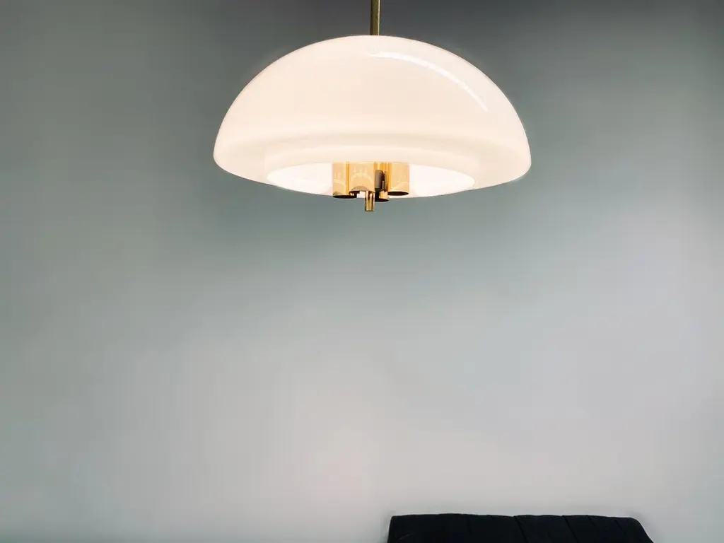 Glashütte Limburg Five Opal Glass & Brass Pendant Lights, 1970s, Germany