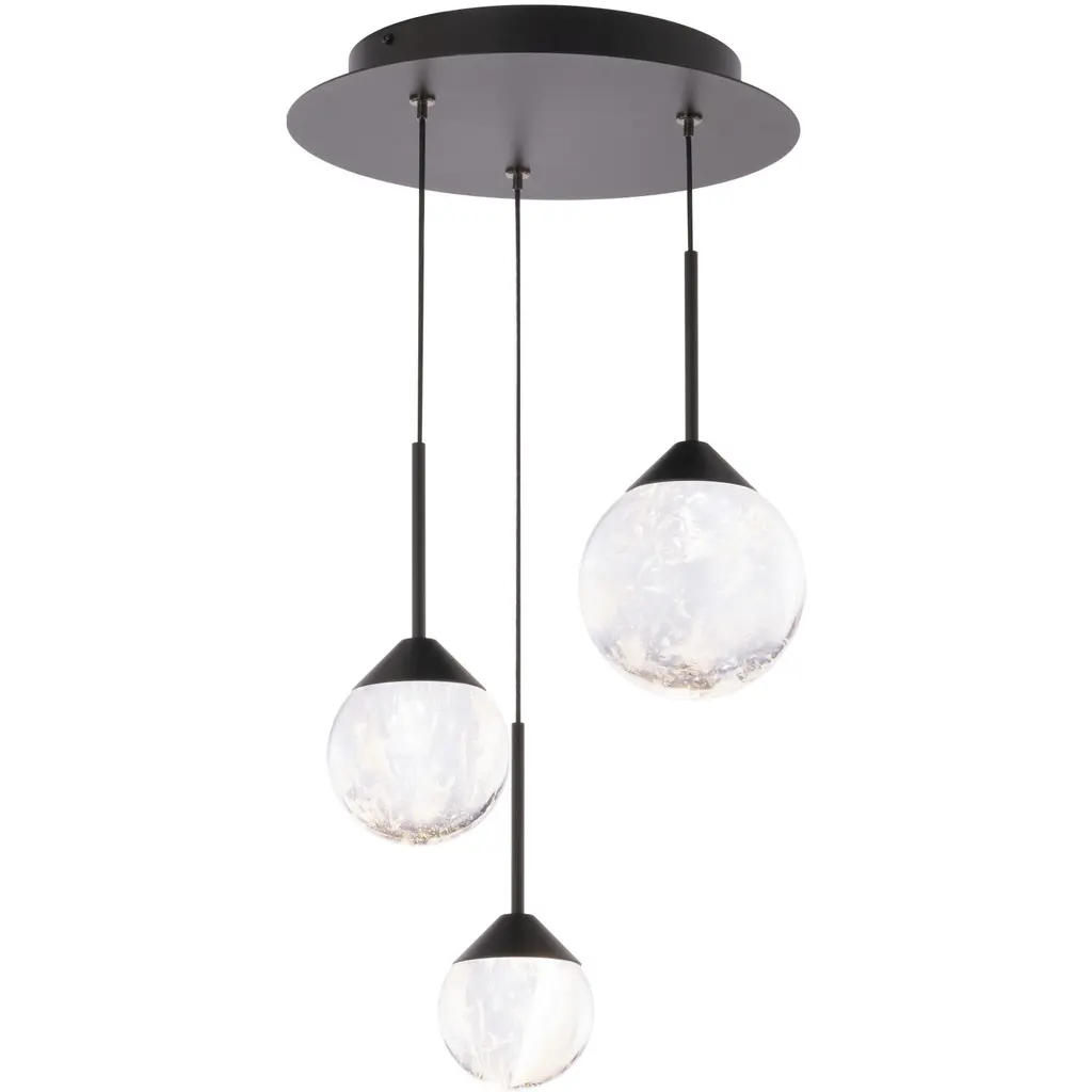A design for the ages. Even if your room transitions in décor, the clean silhouette Glass 120. 03 Multi-Light Pendant from Anony remains a constant source of comfort and sophistication. Toronto-based Anony prides itself on creating pieces that last. As the pendant shows, pure geometry is timeless. Each 120-millimeter glass globe shade is handcrafted locally in Toronto using honest materials. An acid-etching process gives the glass a soft opaque look that mellows light with beauty. Sporting the latest LED technology, the globes pop in the air as seductive orbs. The orbs glaze the room with uniform light. You can arrange the orbs on an even plane or let them cascade with the adjustable suspension.