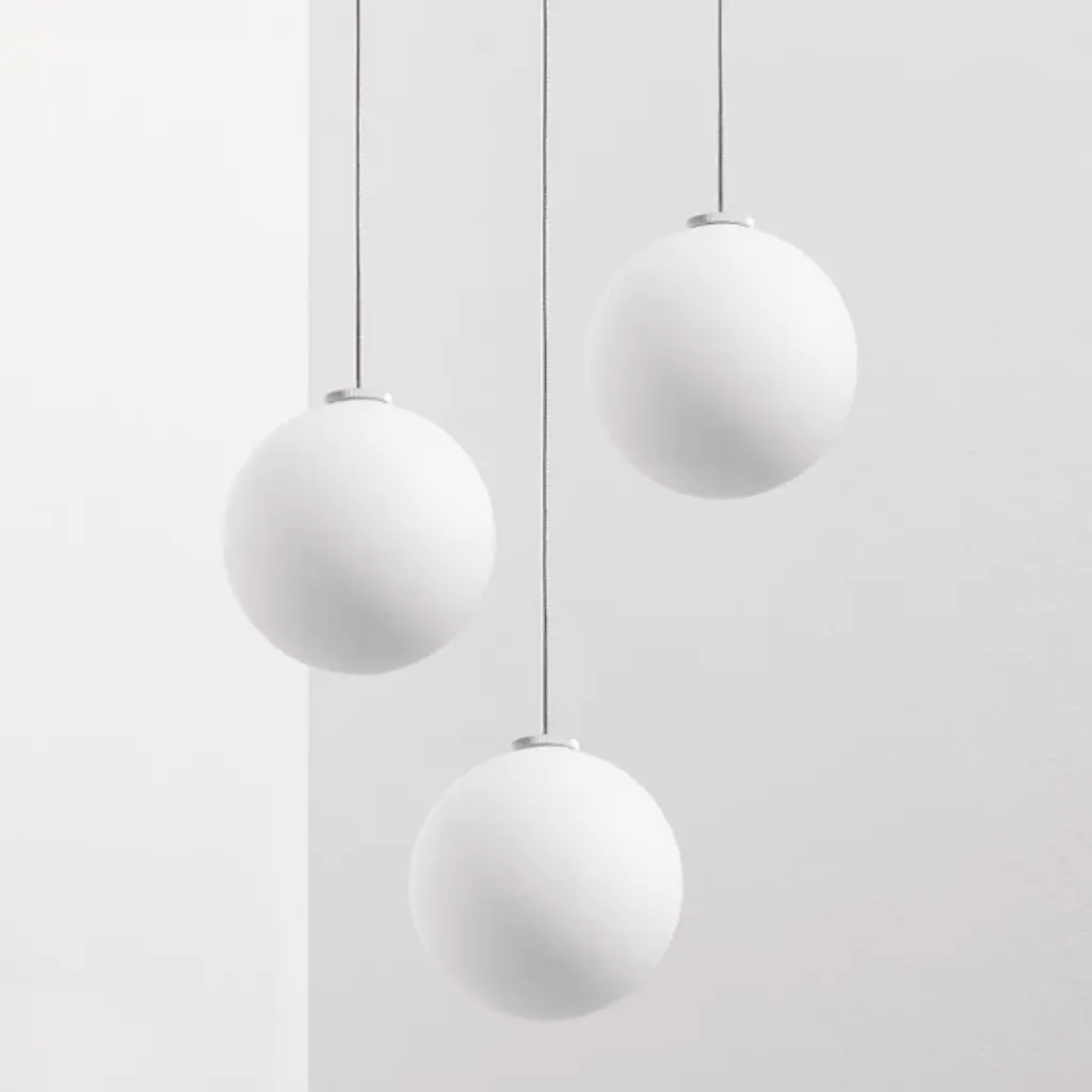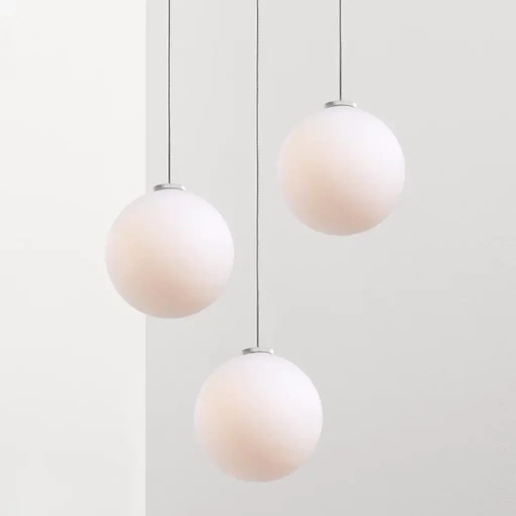 A design for the ages. Even if your room transitions in décor, the clean silhouette Glass 120. 03 Multi-Light Pendant from Anony remains a constant source of comfort and sophistication. Toronto-based Anony prides itself on creating pieces that last. As the pendant shows, pure geometry is timeless. Each 120-millimeter glass globe shade is handcrafted locally in Toronto using honest materials. An acid-etching process gives the glass a soft opaque look that mellows light with beauty. Sporting the latest LED technology, the globes pop in the air as seductive orbs. The orbs glaze the room with uniform light. You can arrange the orbs on an even plane or let them cascade with the adjustable suspension.