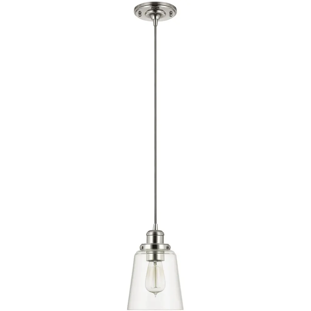 Put your bulbs on display with the Savoy House Glass Filament 7-4134-1-SN Mini Pendant. Designed to optimize the vintage look of antique reproduction carbon-filament bulbs, the Clear glass shade features a traditional shape. Clean and uncluttered metal supports enhance the overall impression, at once modern and worthy of restoration-style interiors.