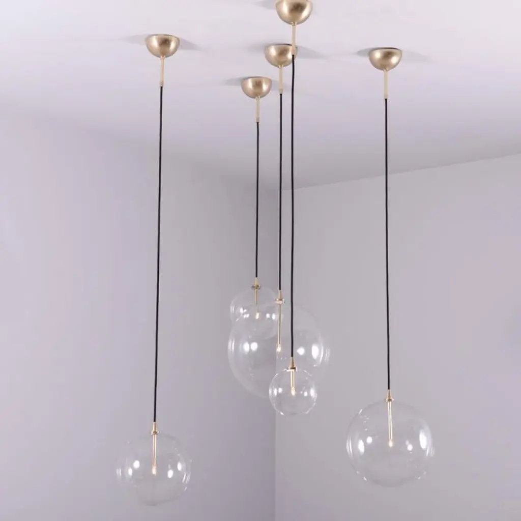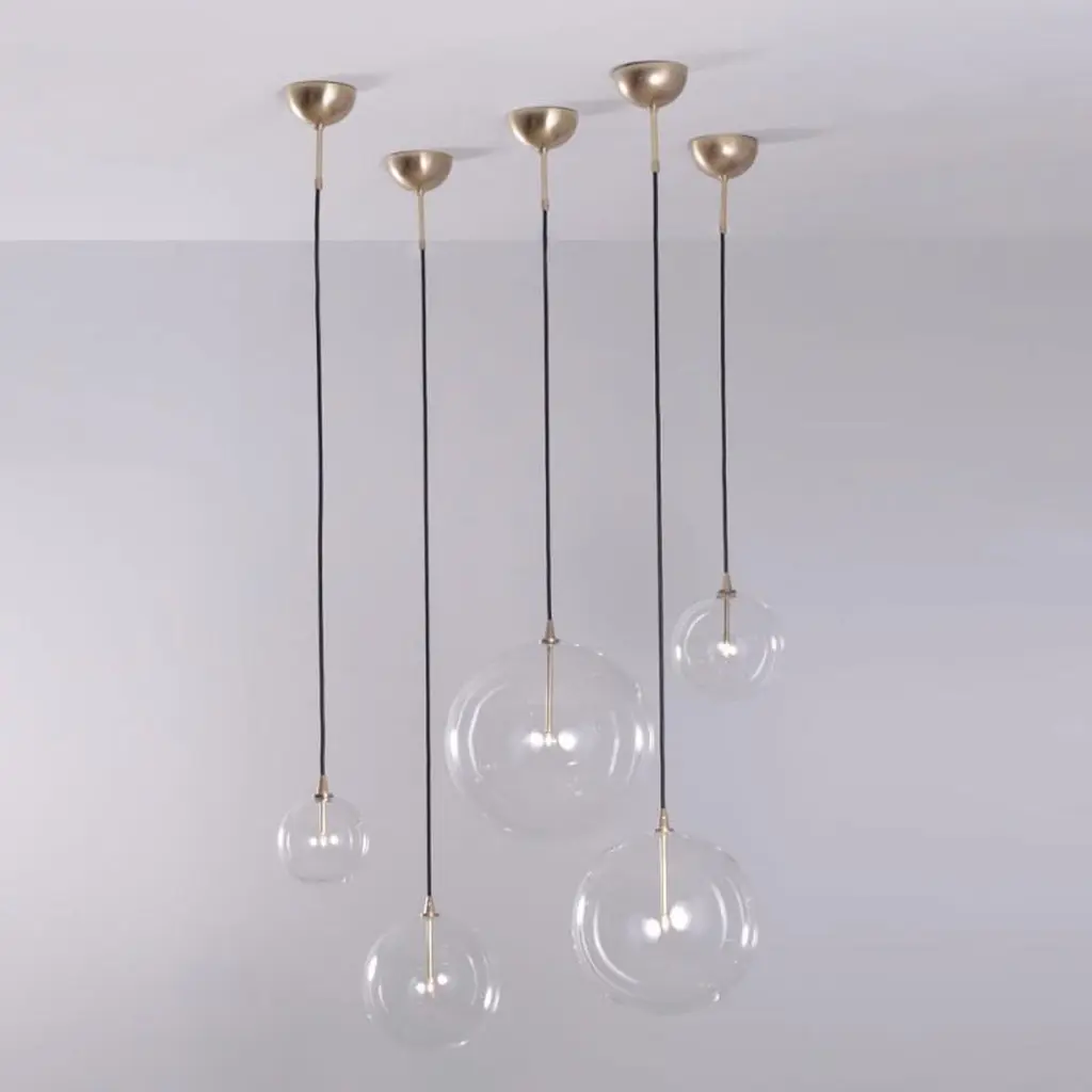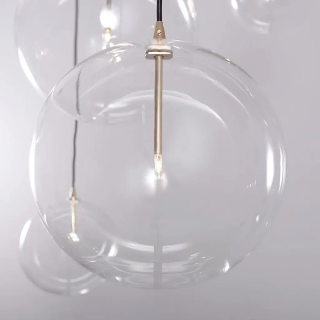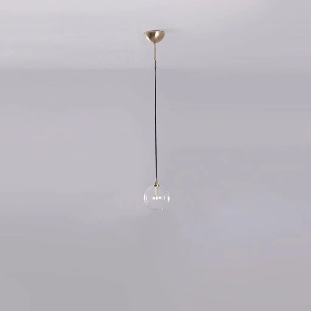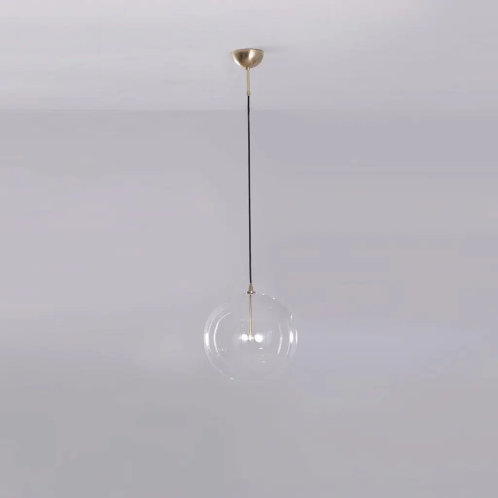 Glass Globe 35 pendant light by SchwungDimensions: D 35 x W 35 x H 353.9 cm Materials: Solid brass, mouth-blown glass globes.Finish: Natural Brass. Available in finishes: Polished Nickel or Black Gunmetal. All our lamps can be wired according to each country. If sold to the USA it will be wired for the USA for instance. Made entirely of solid brass and mouth-blown glass globes. Could be dimmable. Schwung is a german word, and loosely defined, means energy or momentumm of a positive manner. Synonyms: Verve, zest, panache, momentum.Mission:Developing lighting fixtures through simple and timeless materials, sustainably; we are committed to creating quality products that last. Beginning with the design we are constantly refining aesthetic and function. Both in the lamps themselves and throughout the manufacturing process we pursue a holistic approach to efficiency, and the reduction of environmental impact.Concept:Schwung is a lighting concept, connecting aesthetic and quality through matter. An exploration of history, forms and function, elegantly fulfilling an essential need of modern life, capturing light. Our pieces play with architecture or create spaces of their own. Founded by Dominique sente (Belgium) and rudi nijssen, (Netherlands). What began as a curiosity for objects, a venture in collecting, curating and trading antiques-became a passion to create original designs.Process:From the beginning, schwung home has striven for cutting-edge and quality lighting, handcrafted in Europe. Emphasizing brass and glass, which are not only durable but can be reused indefinitely, our lamps are 98% recyclable. Today the company operates out of an integrated design and manufacturing facility in Poland. This local approach allows us to significantly shorten the product lead time and greatly improve quality standards.All our lamps can be wired according to each country. If sold to the USA it will be wired for the USA for instance.