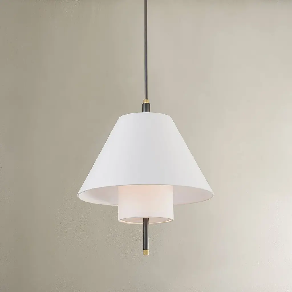 Glenmoore gives the classic shade on a stick a chic modern update. A sleek metal arm is the base for a tapered white linen shade with an elongated cylindrical shade set inside. This uniquely tailored detail extends light downward for a soft glow. Knurled accents add a touch of sophistication to this already refined design, available as a wall sconce, pendant, chandelier, and floor lamp.