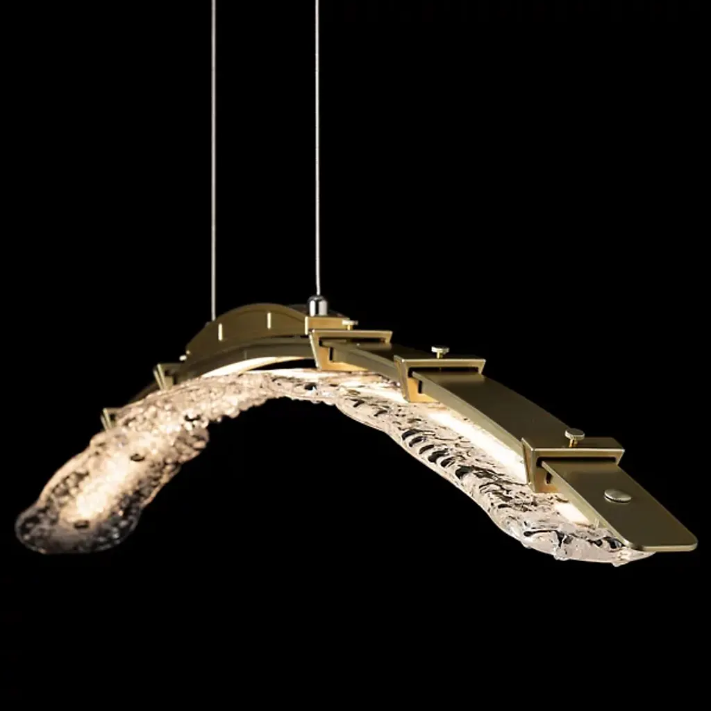 A distinctive lighting design inspired by the idea of light shining through lake ice. The Glissade LED Pendant by Hubbardton Forge also suggests movement in its gentle curve, embodying the act of glissade, or sliding down an icy hill. The glass shade is hand-poured and finished with a generous layer of glass frit to give it a glacial texture. In place within the curved metal frame, the glass sparkles warmly with the sun-like light of the LEDs housed within. Designed by Andy Morter.