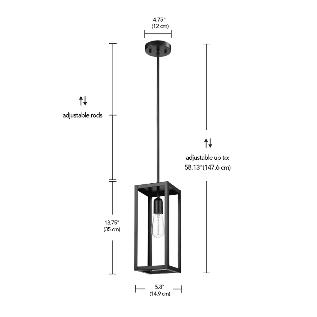 Elevate your home with the 1-Light Pendant Ceiling Light by Globe Electric. This unique hanging light creates a cozy and functional lighting atmosphere that perfectly complements your pre-existing decor. The open cage shade adds a captivating yet contemporary twist to the classic cabin design, while the visible bulb allows you to express your creativity – change the bulb, change the look. With a fully adjustable 4-rod assembly, you can customize this fixture to achieve the ideal height and positioning to best complement your room. Enjoy the convenience of full dimmability with a compatible dimmer switch (sold separately) or make your ceiling light even smarter by adding a Globe Electric Smart bulb! Simply screw it in and unlock endless lighting solutions controlled by your mobile phone. Expand your lighting horizons and effortlessly create the ideal ambiance for every occasion.