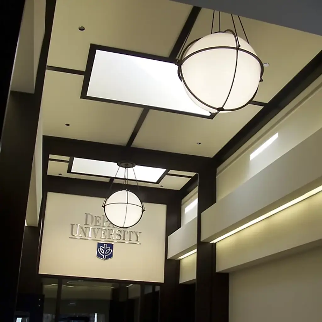 Like lines of longitude and latitude, the aluminum frame of the Boyd Lighting Globe Pendant wraps around the bright white spherical shade securely suspending the globe from the ceiling. The gloss white acrylic diffuser provides bright general lighting. The pleasing continuity of the design is a result of Boyd’s fine craftsmanship.