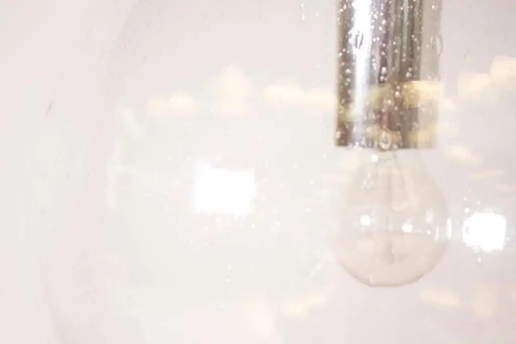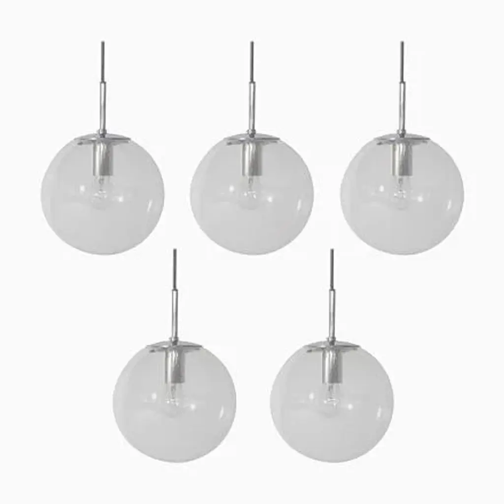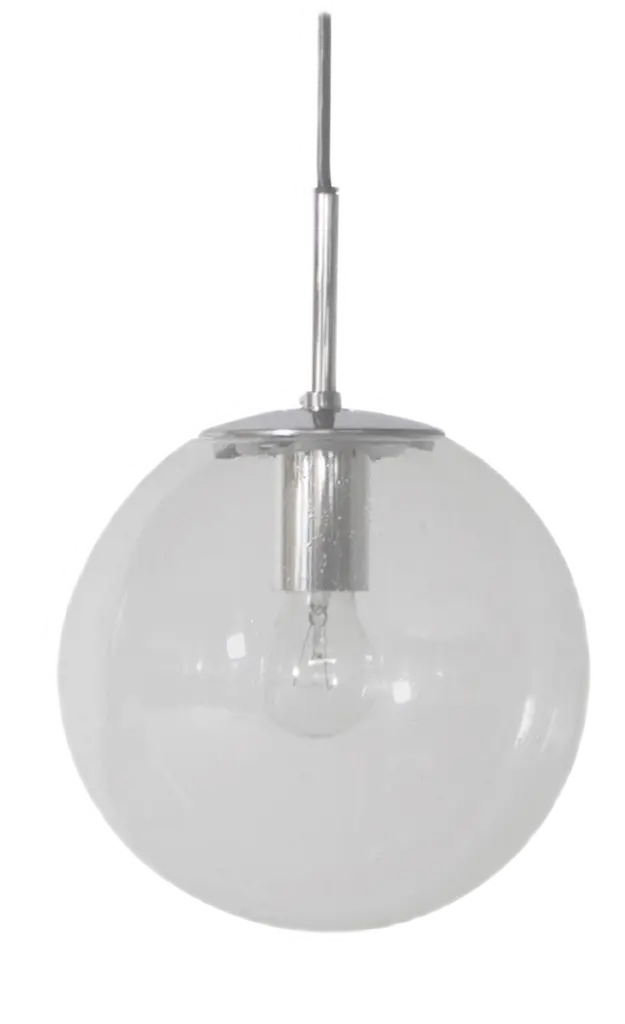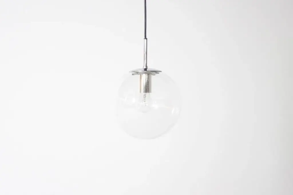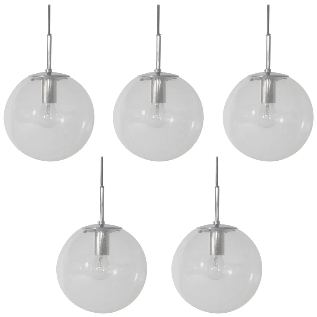 Glashütte Limburg pendants in beautiful condition. Chromed hardware. Handblown transparent bubbled glass globes which create a wonderful light effect. Black cord and original canopy. Marked: Glashütte Limburg. Sold per lamp. This piece is attributed to the mentioned designer/maker. It has no attribution mark and no official proof of authenticity, however it is well documented in design history. I take full responsibility for any authenticity issues arising from misattribution, Up to 250V (Europe/UK Standard).The wiring of this item may be original and might need replacement, if not specified otherwise.