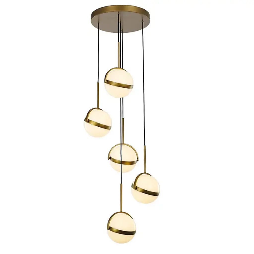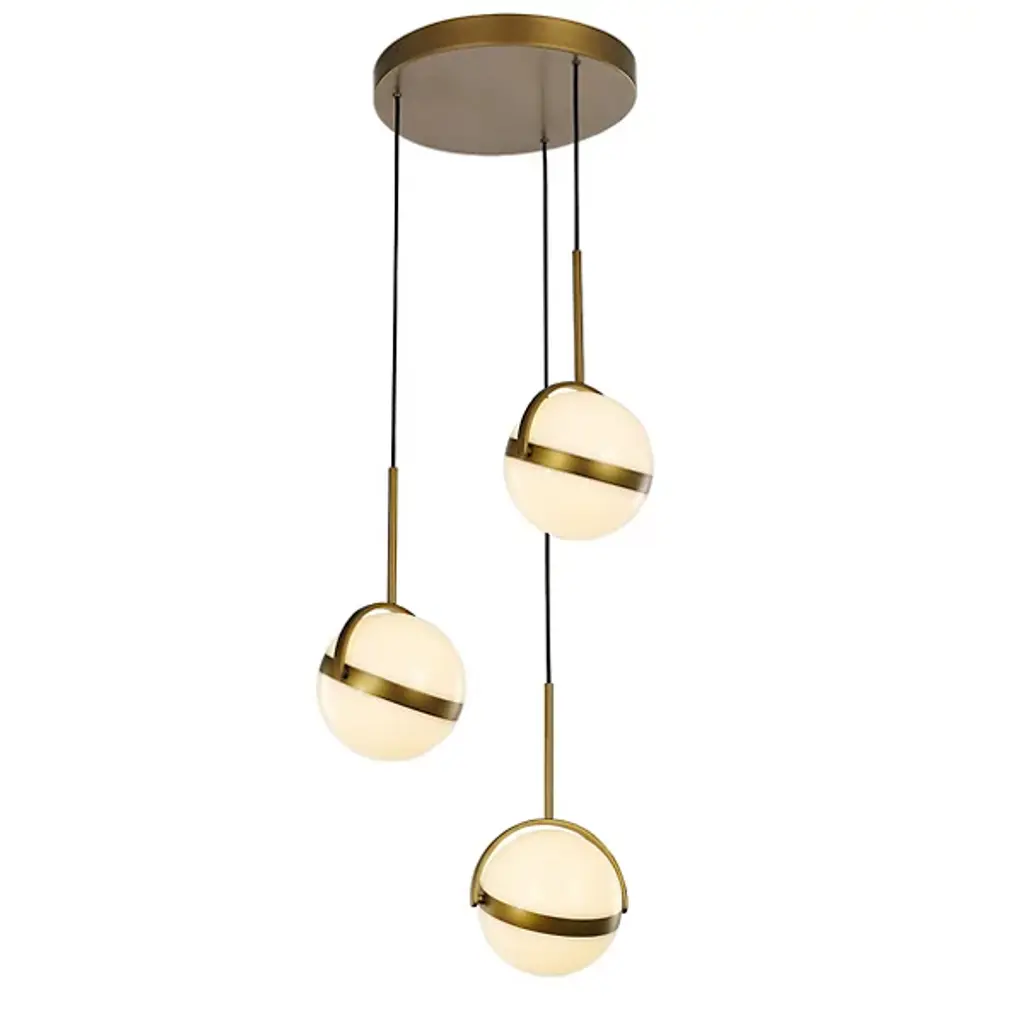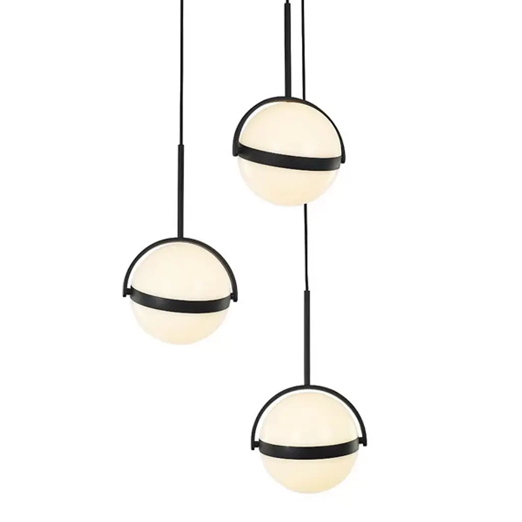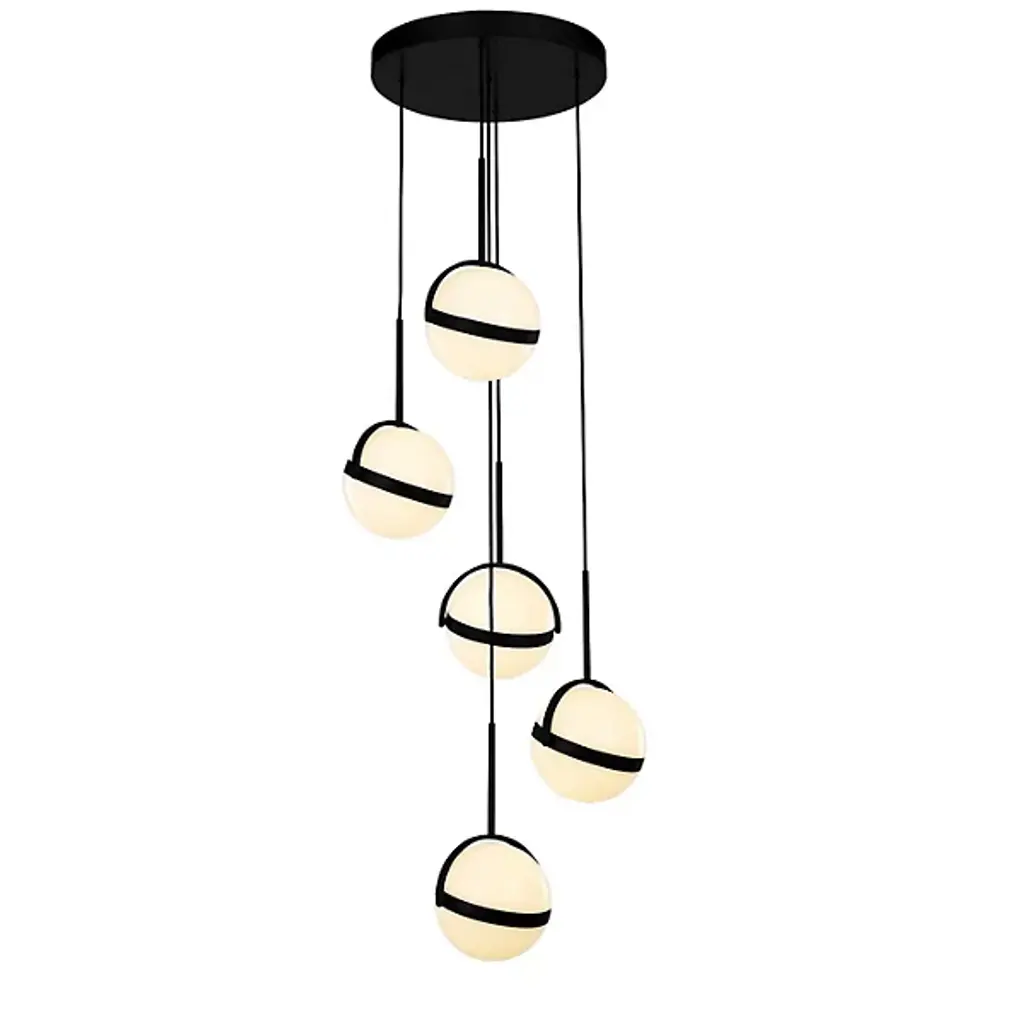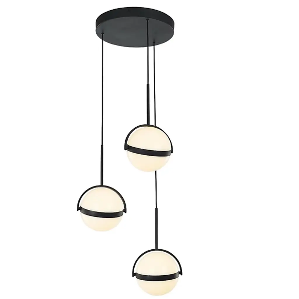 Much more sophisticated and elegant than the globe on top of your high school geography teacher's desk. The Globo LED Multi-Light Pendant from Alora, inspired by the framework of the classic globe structure, lets you adjust its axis for a varied or uniform design. Fabric covered black cords suspend the globes together with sleek metal bands, accentuating the curvature of the orbs. When lit by its LEDs the glass globes radiate into a galaxy of soft ambient lighting.