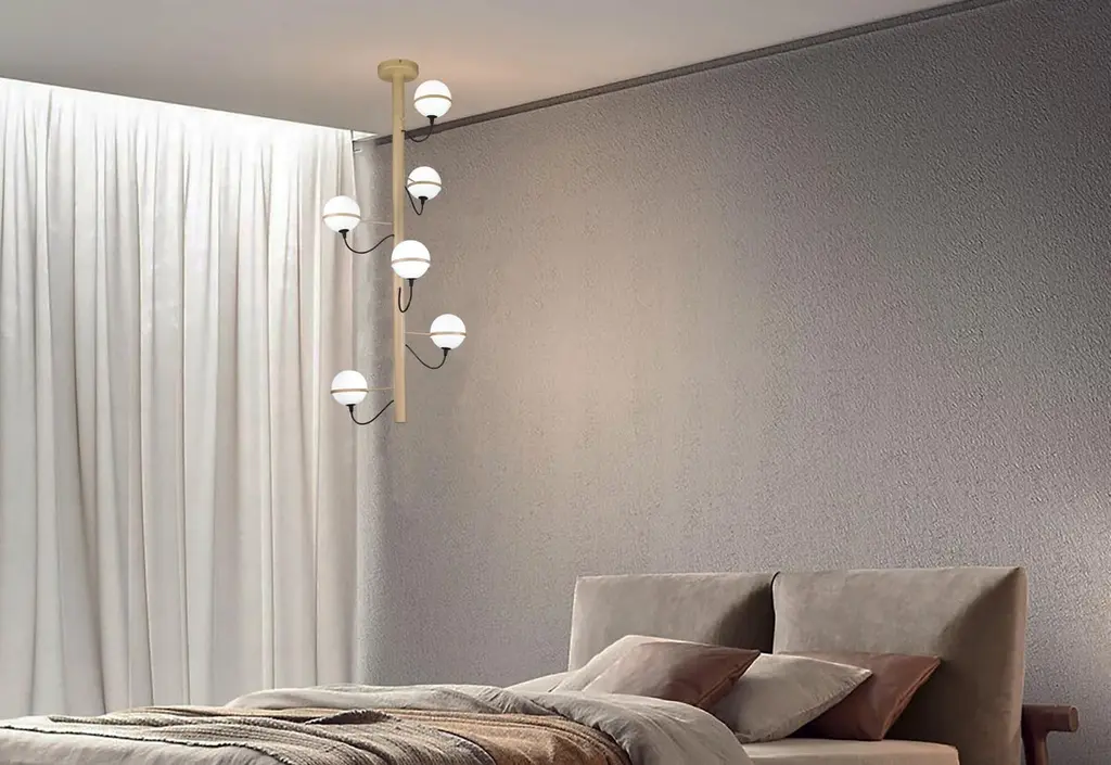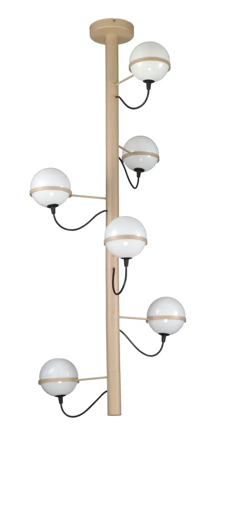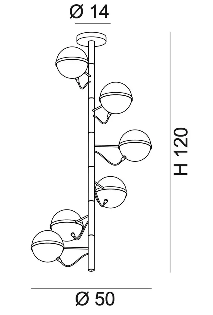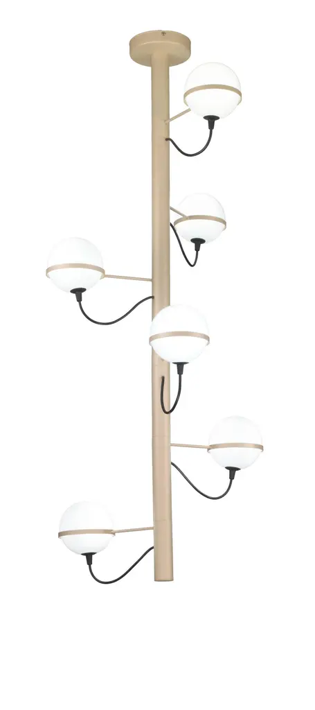 Italian vertical chandelier with six white opaline glass globes held by champagne colored metal structure / Made in Italy by Fabio Ltd inspired by Gino SarfattiDiameter: 20 inches / Height: 47 inches6 lights / G9 type / max 25W eachOrder only / This item ships from ItalyOrder Reference #: FABIOLTD C880 WHITE
