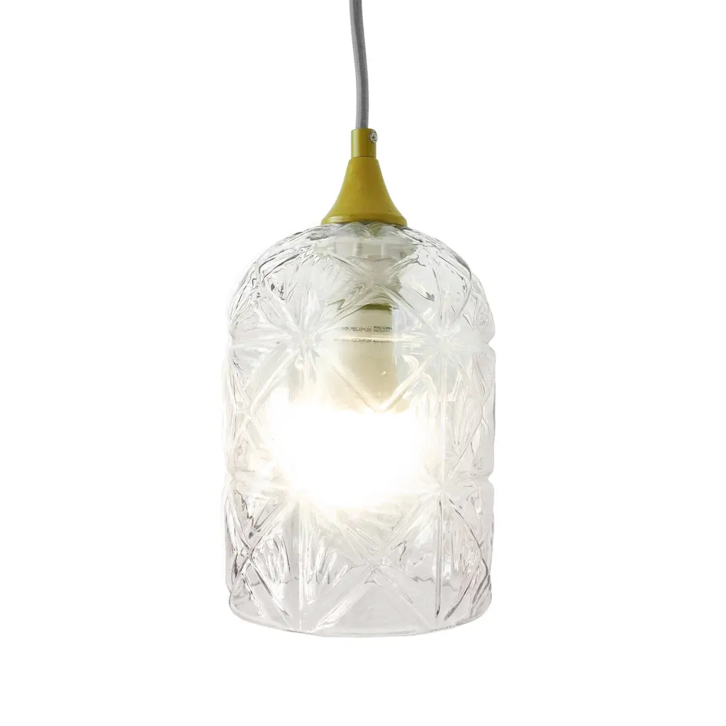 Main Material:Glass+MetalOverall Dimensions:66.9"H x 5.7"W x 5.7"DNet Product Weight:1.7 lbWire Cord Length:59.1"Shade (in) Height - Top to Bottom:7.9"Shade (in) Width - Side to Side:5.7"Product DimensionsAssembled Length (in.):5.70Assembled Width (in.):5.70Assembled Height (in.):66.90Product Weight (lbs.):1.70Shade (in) Depth - Front to Back:5.7"Package SizeLength (in.):7.90Width (in.):7.90Height (in.):15.00Weight (lbs.):2.40Product FeaturesCrystal-Cut Glass Shade: Creates a dazzling light diffusion effect, bringing a luxurious ambiance to your home.Gold-Painted Metal Finish: Offers a durable design with a sophisticated, brass-inspired appeal.Mid-Century Modern Design: Merges retro charm with modern elegance, complementing a variety of interior styles.E26 Bulb Compatibility: Supports energy-efficient bulbs up to 25W, ensuring functionality and convenience.Versatile Application: Ideal for kitchens, dining rooms, or as an accent piece in any modern or contemporary space.