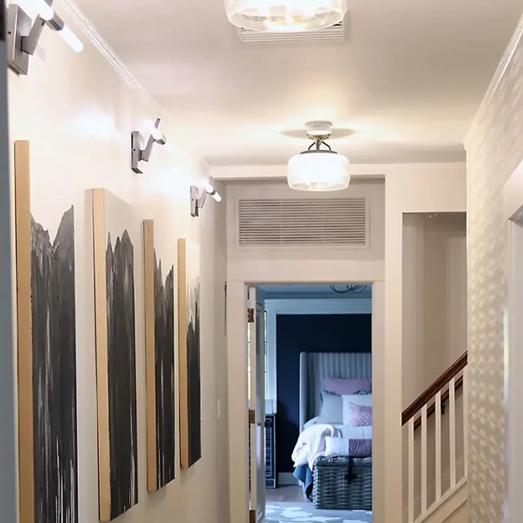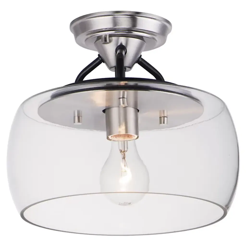 Simply refined. The Goblet Semi-Flushmount by Maxim Lighting embodies sleek sophistication. From the elegant appeal of its clear glass shade to the steel frame available in multiple two-tone finishes, this flushmount's tailored aesthetic is a gorgeous complement to its bright yet pleasant incandescent light source (bulb not included). Install it in a kitchen or foyer and revel in its warm illumination and stately appearance.