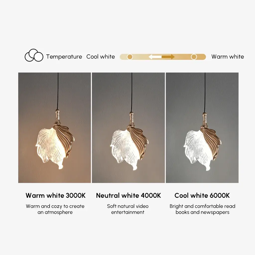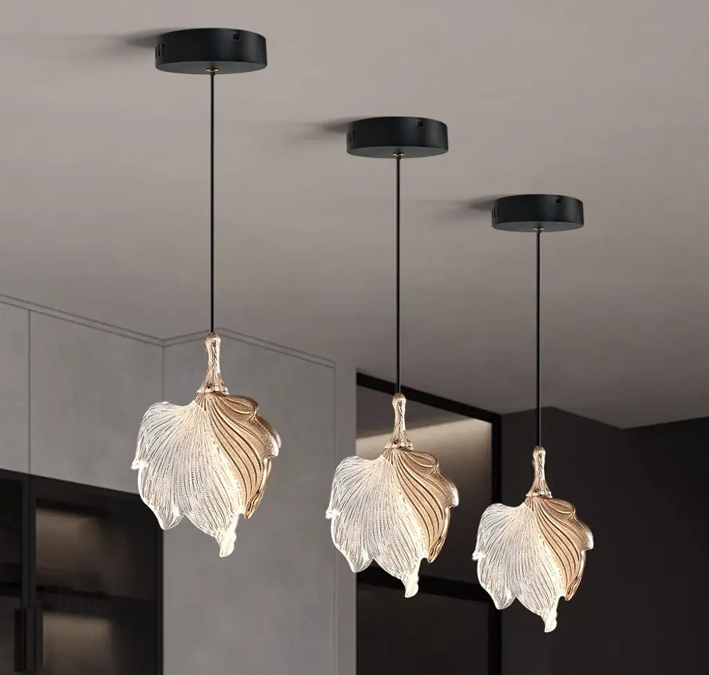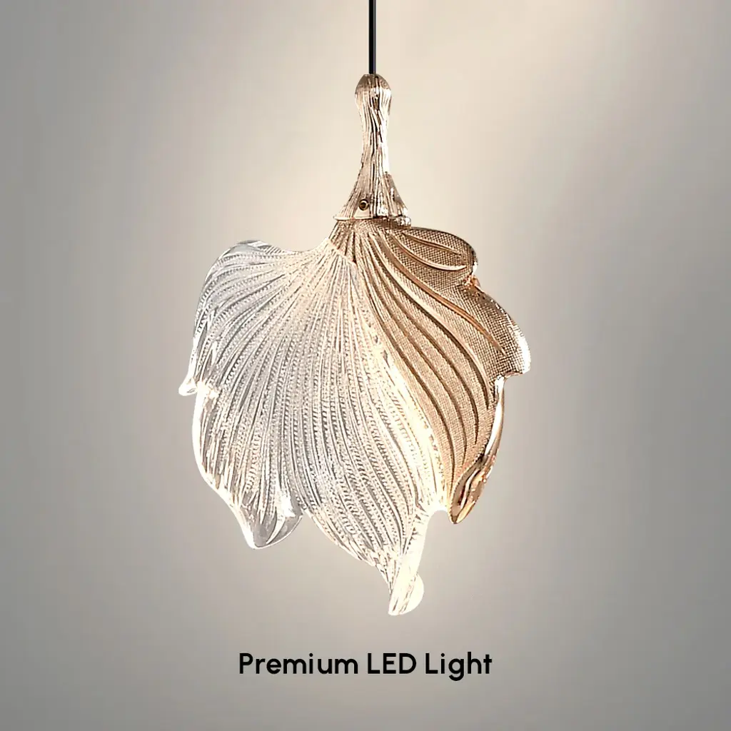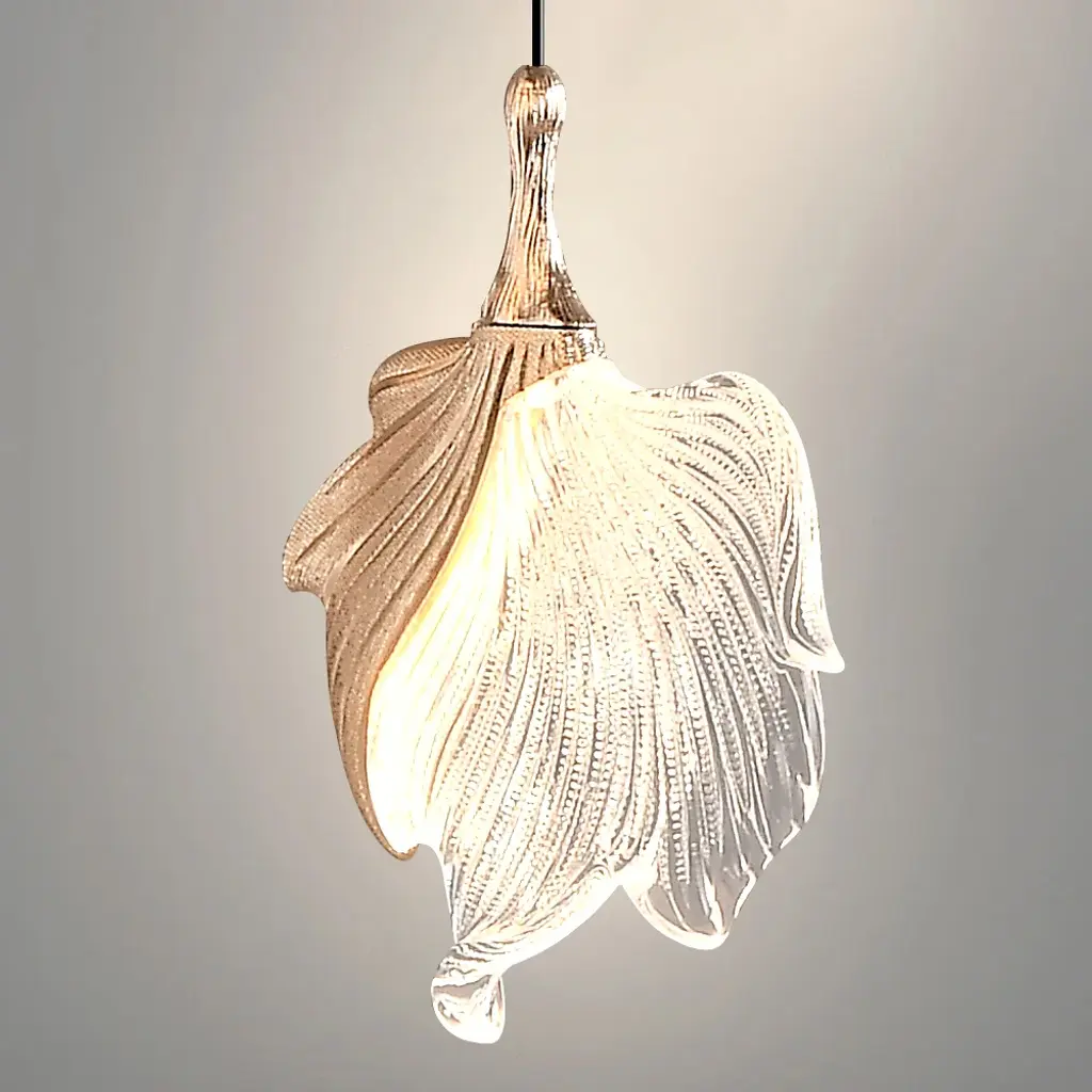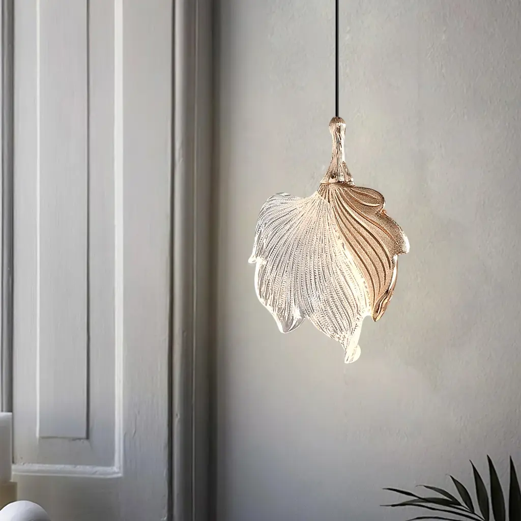 Add a touch of elegance to any space with this modern leaf-shaped pendant light. Featuring a handcrafted glass shade with delicate detailing and a gold accent, it provides a soft, ambient glow. The adjustable cord allows for customizable hanging lengths, making it perfect for any room height. Ideal for living rooms, dining areas, or bedrooms, this fixture blends art and function seamlessly.