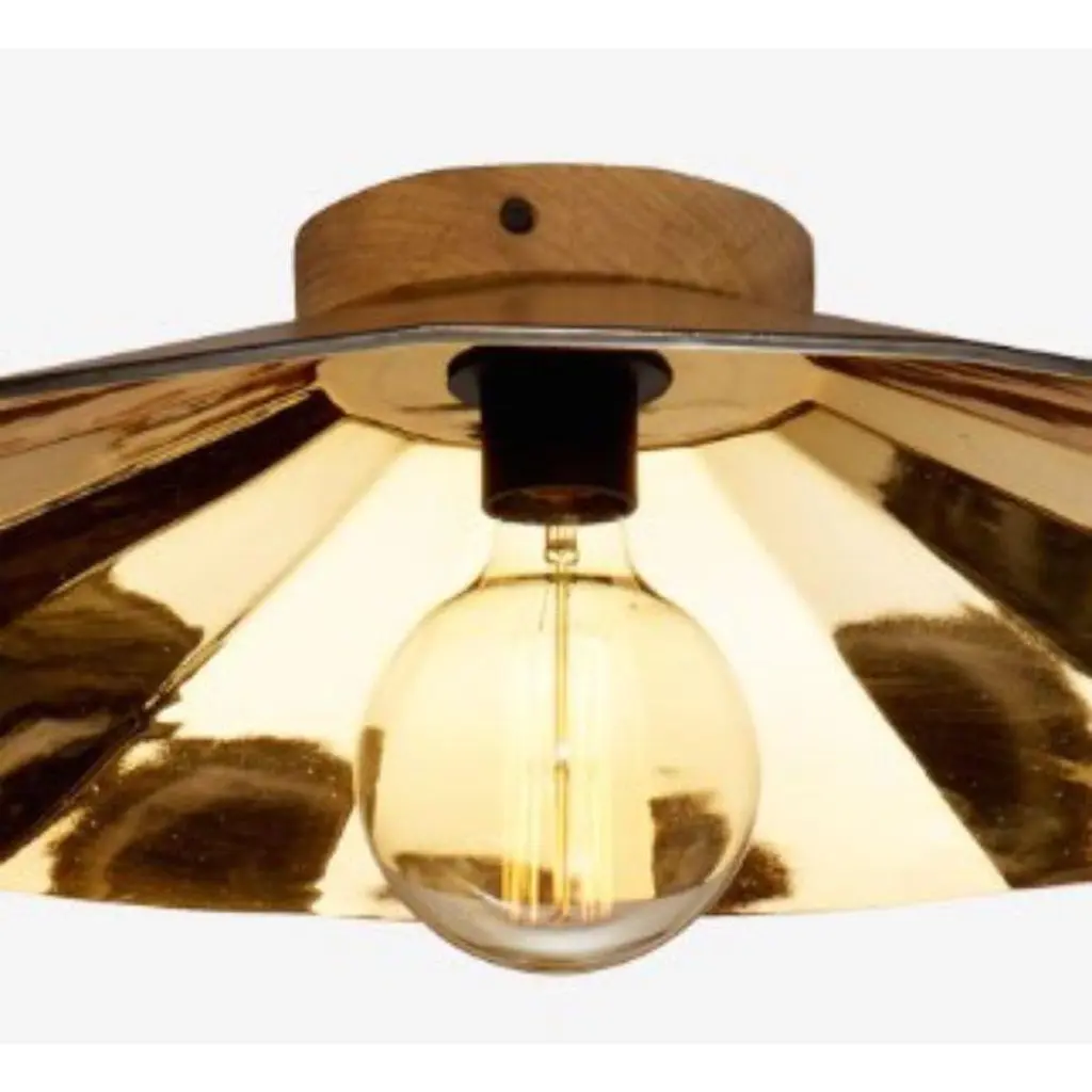 Zénith Fractale pendant light, large by Radar (Handmade)Design: Bastien TaillardMaterials: Thermoformed gold glass, structure in solid oak (Bulb not included).Dimensions: Depth 15 x Diameter 70 cmAlso available: Thermoformed in silver or bronze, matt black metal structure, small size. Available in table lamp, floor lamp, suspension and ceiling lamp versions.All our lamps can be wired according to each country. If sold to the USA it will be wired for the USA for instance.Elegant, timeless, understated. The RADAR collection allows you to take a welcome break from the teeming world of objects and styles, and proposes practical, beautifully designed products made by aesthetes for aesthetes.Francesca Bertini, Milanese born in the Mecca of world design, married to a Neapolitan with whom she lives in France. First tempted by a professional sports career in alpine skiing, she decided to invest in another challenge, her diploma in management of international companies at Università Bocconi in Milan.From marketing for a large editorial group to international and institutional relations for an important think tank European linked to the Italian Ministry of Foreign Affairs, she moved to France and put her experience at the service of the commercial management of a luxury decoration brand. Bastien Taillard was born into a family of interior decorators and designers where creativity was a driving force.After his training at the ENSCI (National School of Industrial Creation, Paris) this tireless traveler settles temporarily in Milan where he meets several of his future mentors, these iconic designers, pioneers and innovators. It is his own path and style that he develops according to his experiences and his encounters.