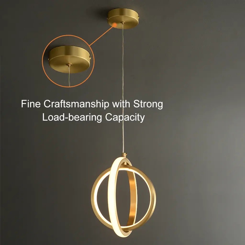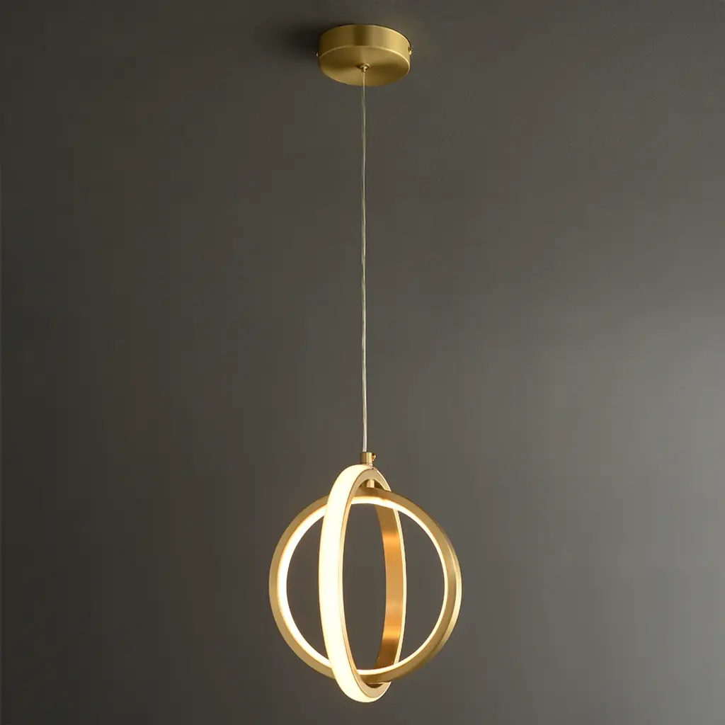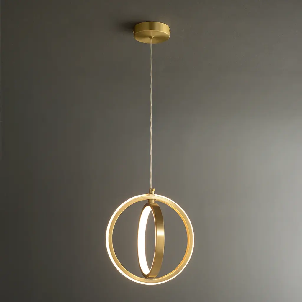 Gold Geometric Pendant Light 2-Ring Led Hanging Light In Brass