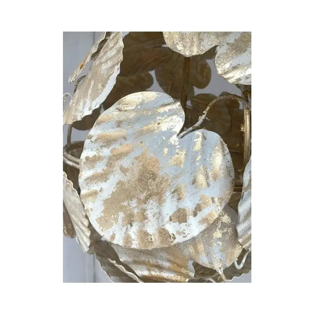 Florentine wrought iron pendant chandelier florentine art gold-leaf and white metal wrought iron chandelier made in italy impressive wrought iron florentine art made in italy. Particular processing for the finish hand-made entirely made in italy, fruit of high italian know-how,elegant and luxury piece of art. the beauty lies in the movement of the leaves. dimensions (cm/in): d 60cm/l 23.6″ finiture: gold-leaf brushed white chain 19.7″ more canopy 2 bulbs. Bulbs not included, they are compatible with led sustainability. european plug (up to 250v).