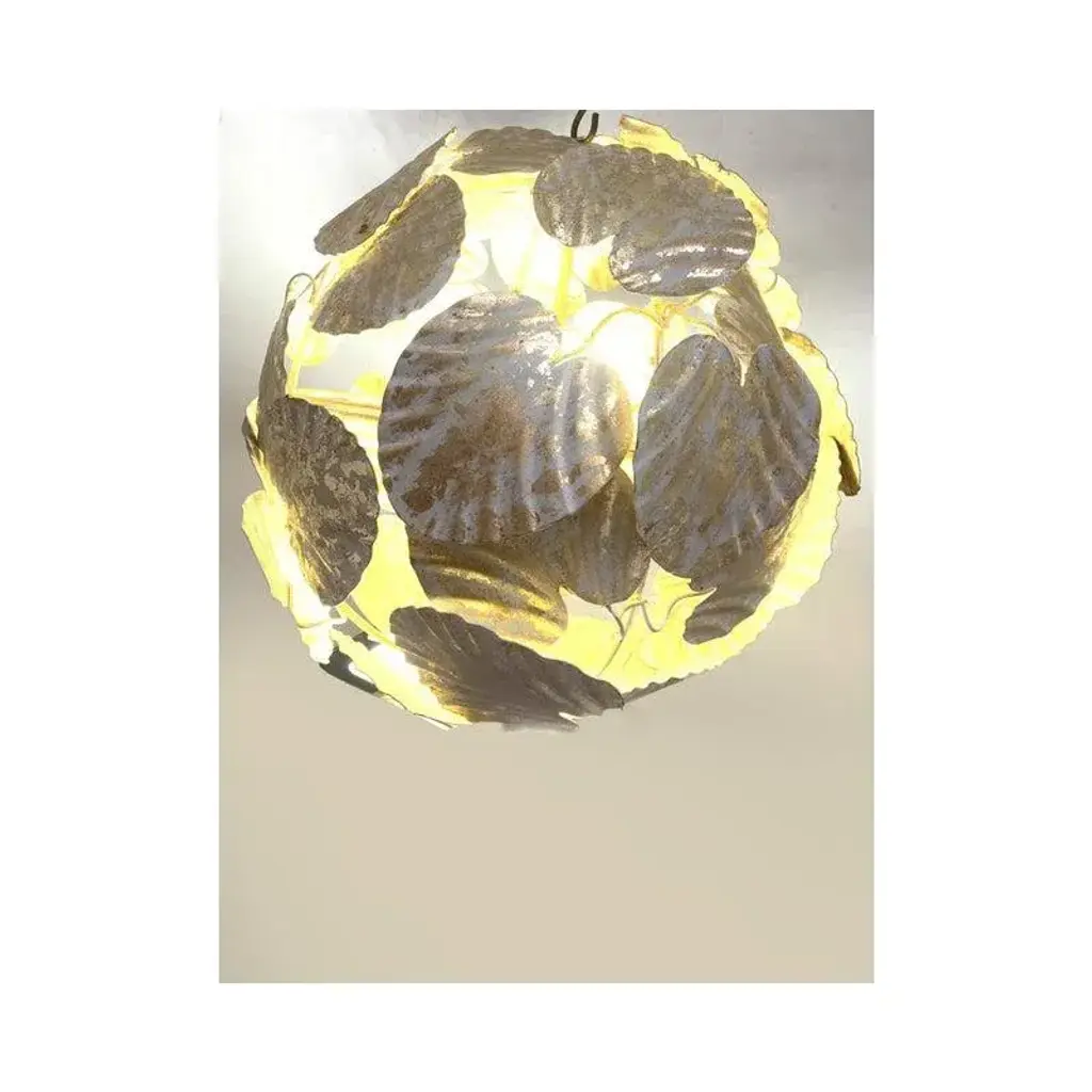 Gold-Leaf And White Leaves Sphere Suspension Pendant By Simoeng