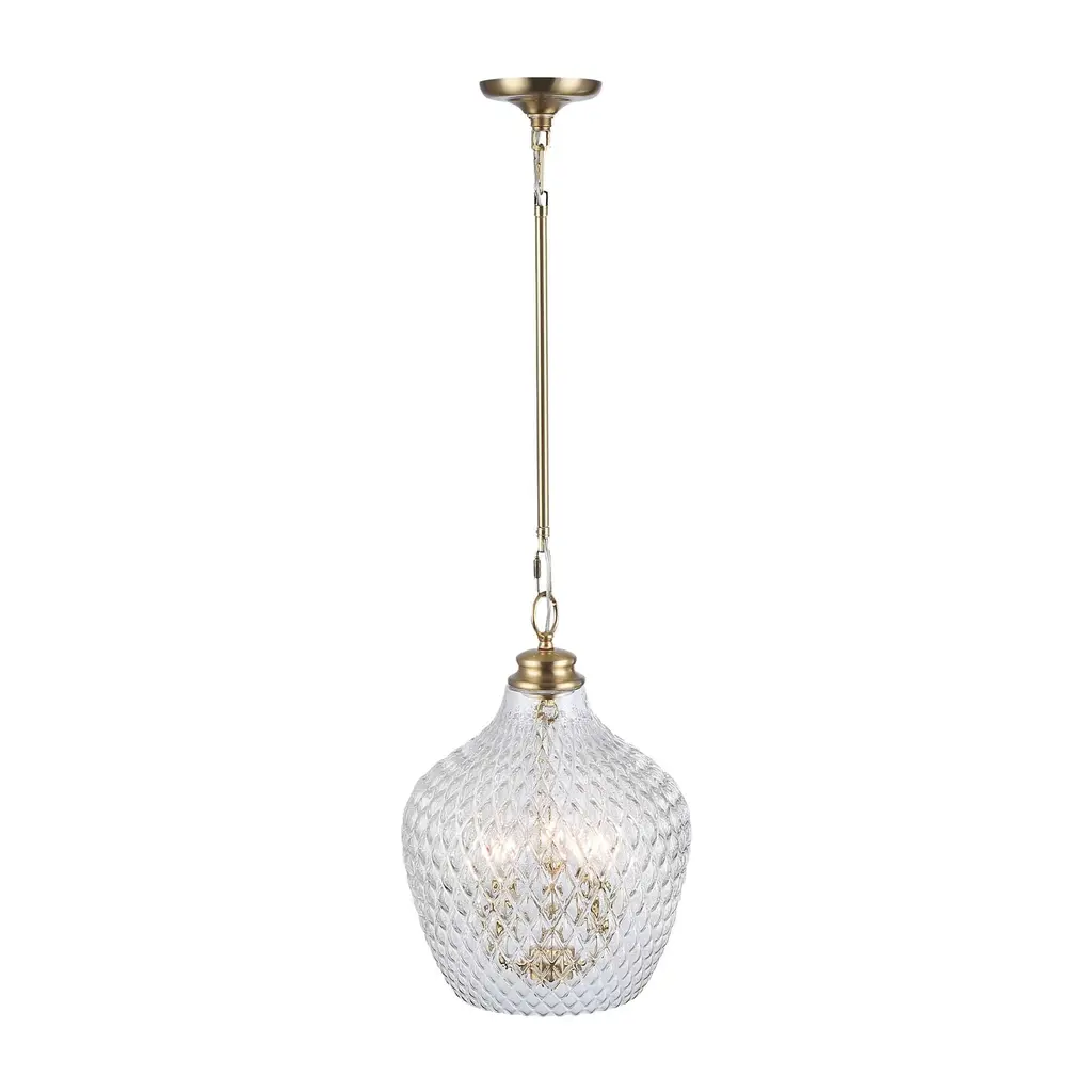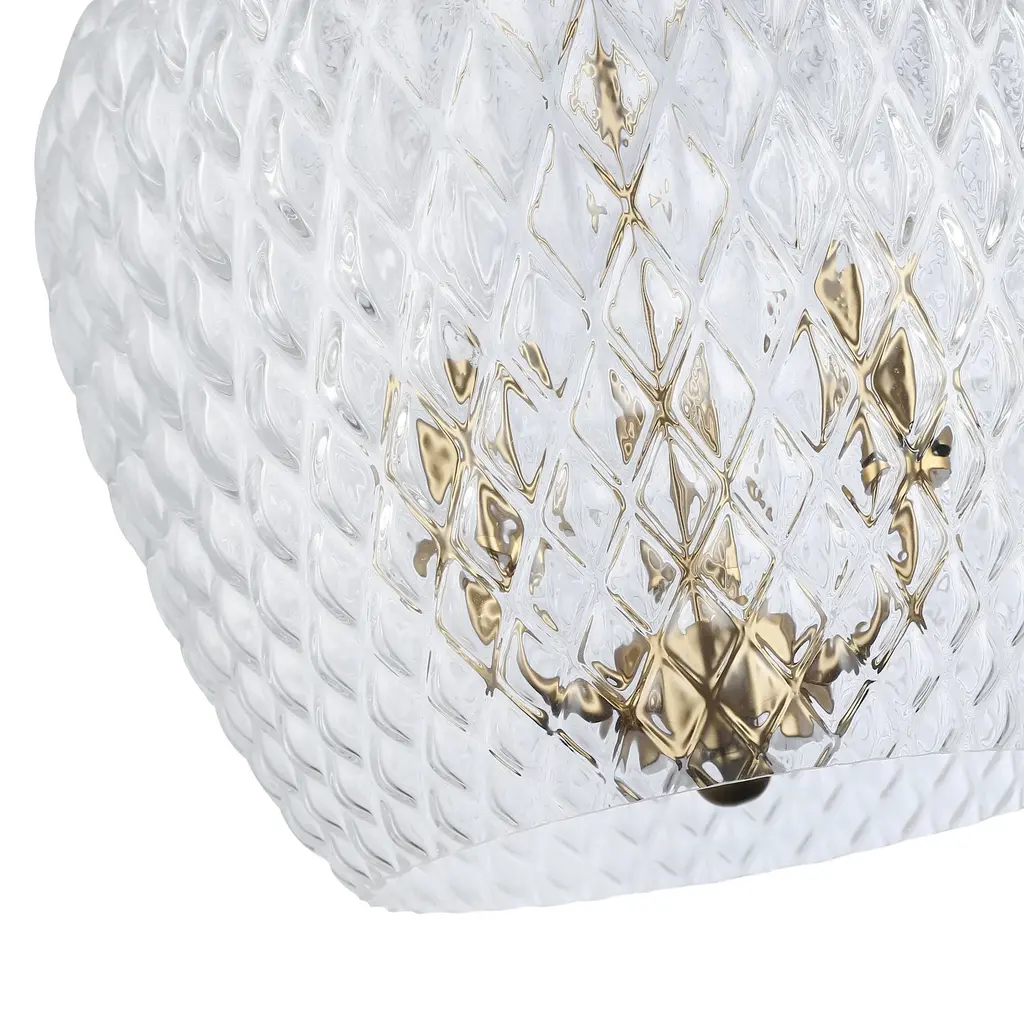 Retro with a flirty flair, Adeline is ideal for eclectic spaces. The transitional fixtures are feminine with a vintage look and organic form. The embossed diamond-cut lattice pattern of the curved glass refracts light and adds visual interest. Open bottom shades create task lighting and allow for easy bulb changes.Features:Dimensions:Electrical Specifications: