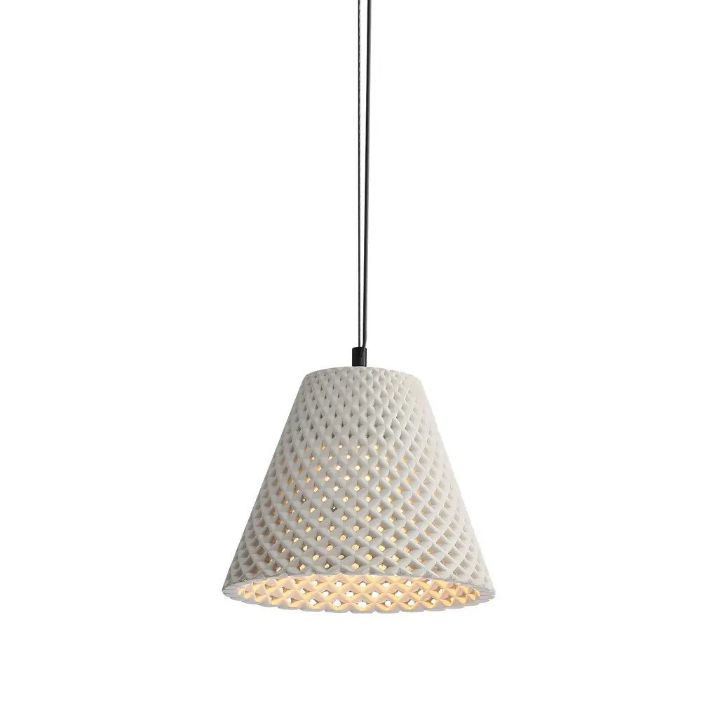 Introduce a touch of modern elegance to your space with Clarus, a pendant light that transforms illumination into artistry. With its striking perforated woven pattern, Clarus casts LED light through its intricate latticework, creating a mesmerizing dance of light and shadow that adds depth and character to any room. Crafted from genuine concrete, this fixture effortlessly blends raw, industrial charm with sophisticated design. Each piece is hand-polished to perfection, highlighting the expert craftsmanship behind its bold yet minimalist aesthetic. Clarus complements a wide range of interiors, from sleek urban lofts to cozy contemporary homes—and even outdoor settings.Features:Dimensions:Electrical Specifications: