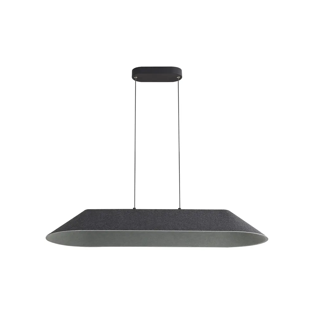 Elevate your space with the Faroe collection, where modern sophistication meets thoughtful craftsmanship. This striking collection features a sleek metal body and canopy, paired with a luxurious felt shade that adds warmth, texture, and a touch of understated elegance to any interior. Designed with more than just aesthetics in mind, the felt shade is crafted from acoustical felt, helping to reduce echo and noise while enhancing the sound quality of your space. Made from recycled materials, Faroe blends sustainability with style, proving that beauty and functionality can go hand in hand.Features:Dimensions:Electrical Specifications: