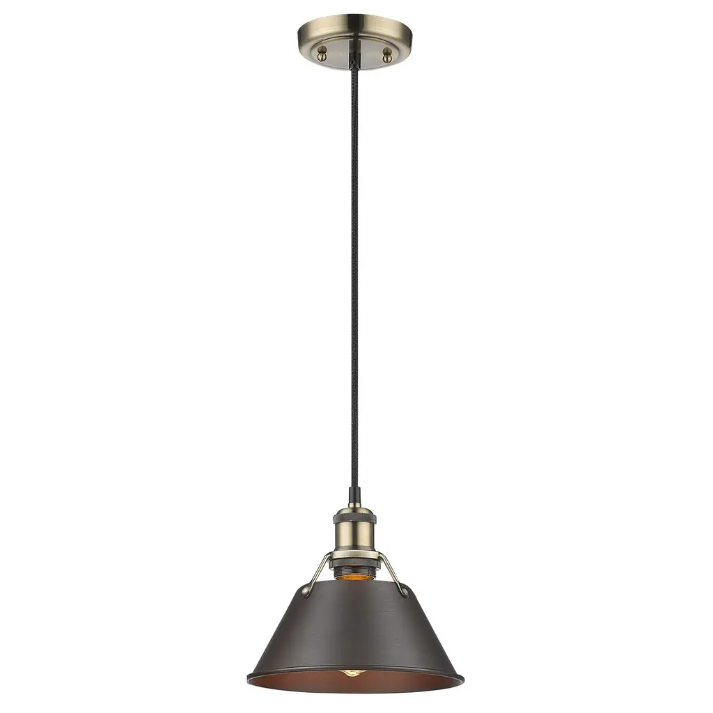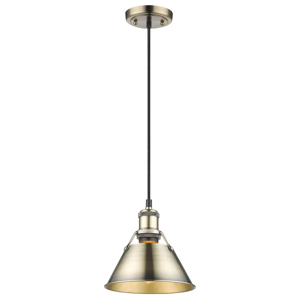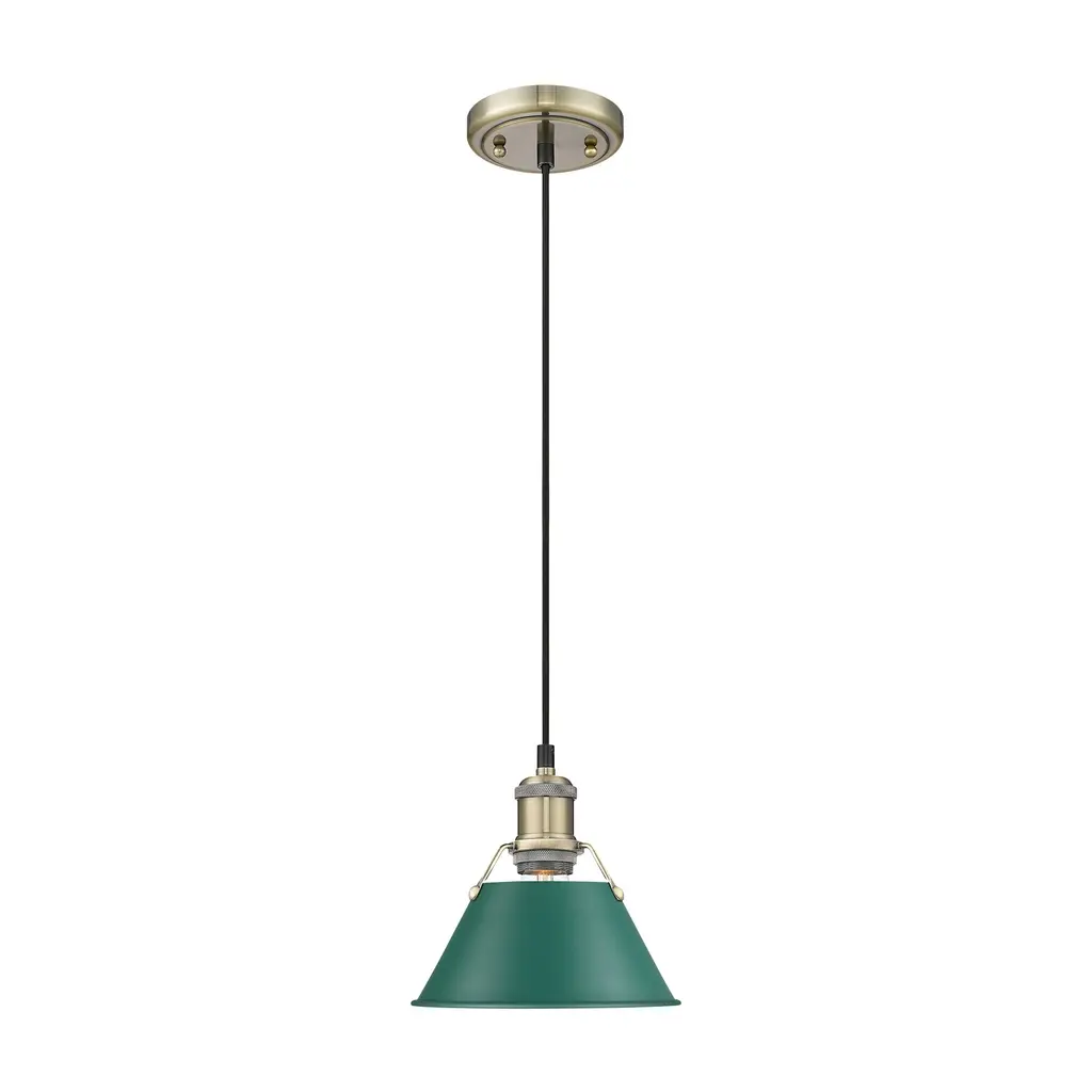 Golden Lighting 3306-S Ab Orwell 8" Wide Mini Pendant - Aged Brass / Pine Green Shades