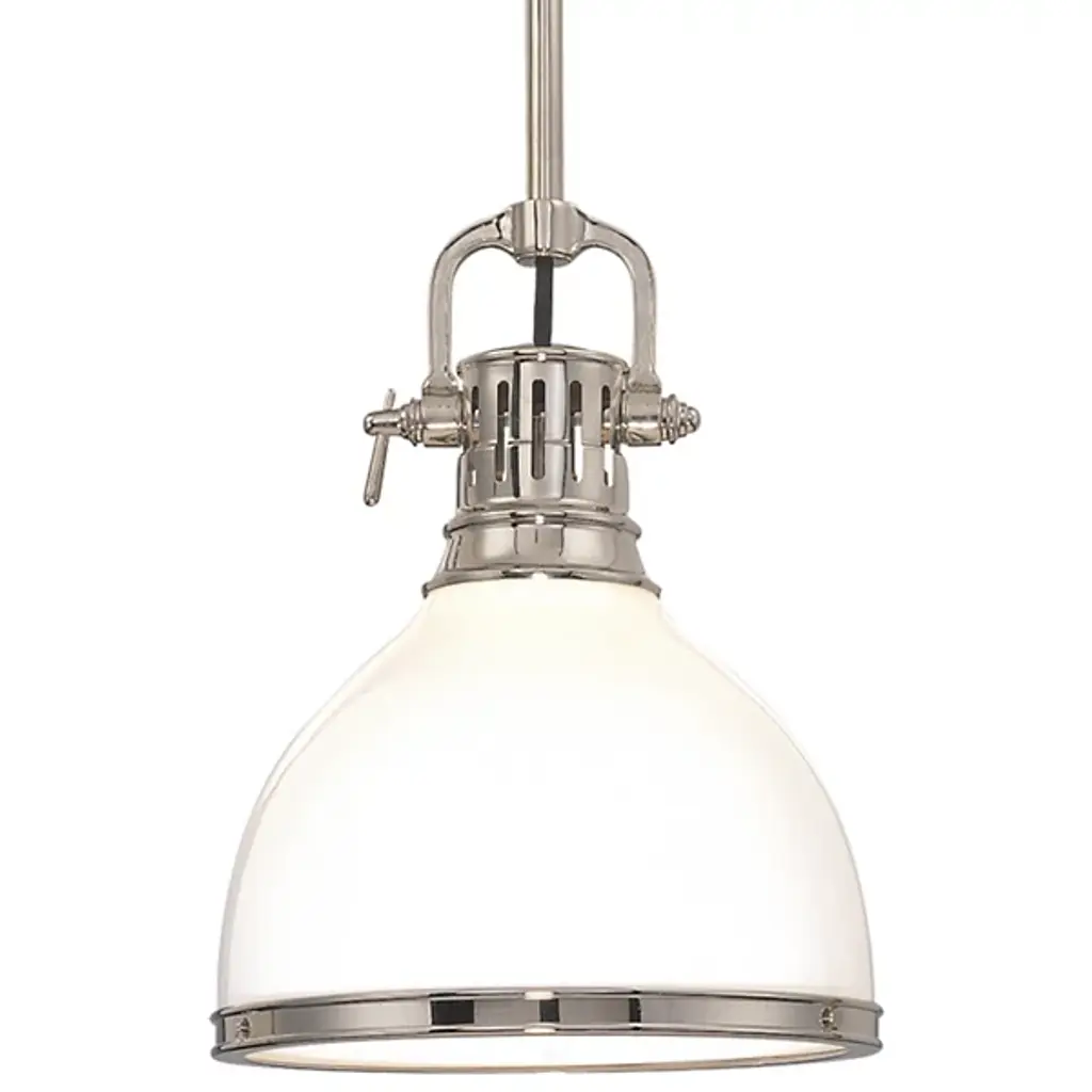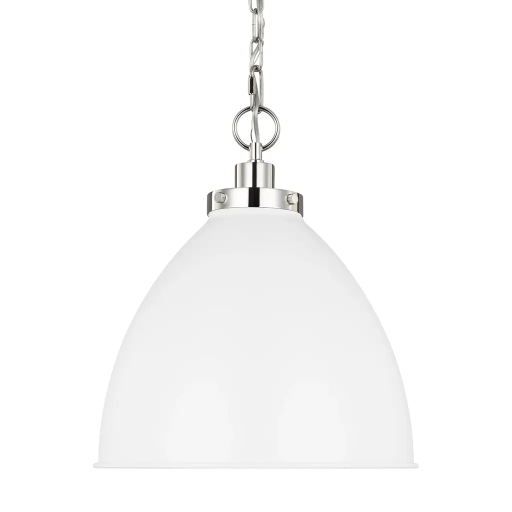 The Duncan collection is contemporary style with an industrial feel. The collection features a variety of simple, traditional silhouettes that are a nod to a bygone era. Transform the look of your room with these classic, vintage-inspired fixtures. A variety of plated and painted metal shade finishes are offered in choice combinations. This large, chain-hung pendant features a glass diffuser and is comfortably sized for a small nook or island. The pendant may be hung individually or grouped over a bar.Features:Dimensions:Electrical Specifications: