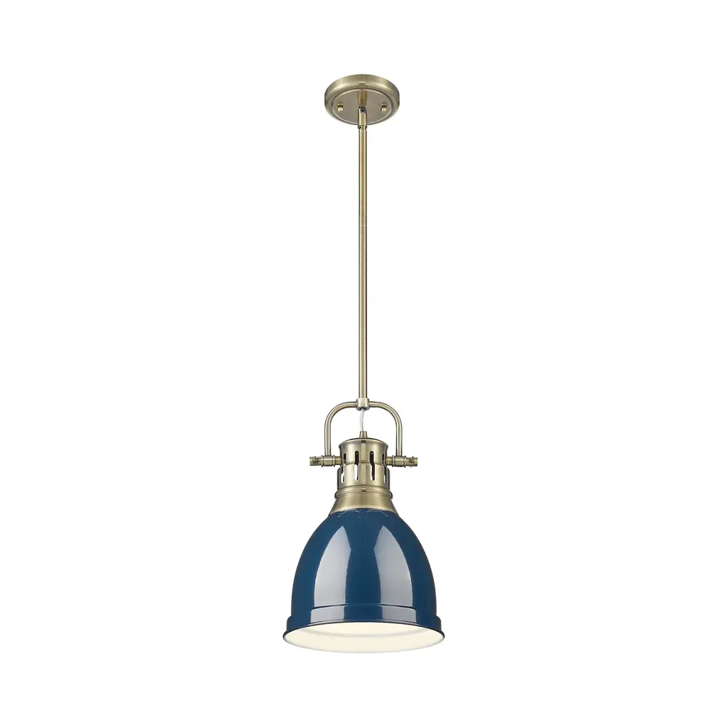 Golden Lighting 3604-S Ab Duncan 9" Wide Mini Pendant - Aged Brass / Matte Navy