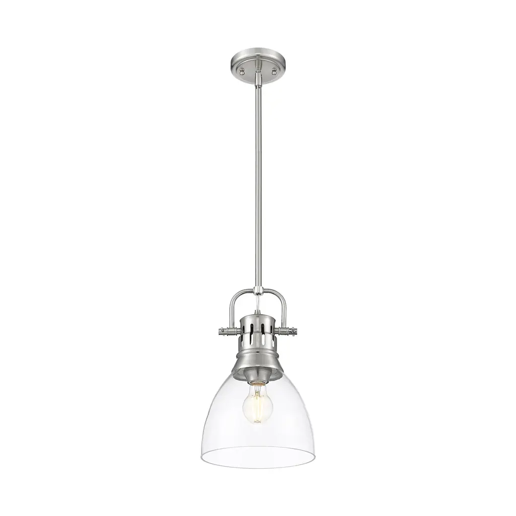 The Duncan collection is contemporary style with an industrial feel. The collection features a variety of simple, traditional silhouettes that are a nod to a bygone era. Transform the look of your room with these classic, vintage-inspired fixtures. A variety of plated and painted metal shade finishes are offered in choice combinations. This small, rod-hung pendant features a may be hung individually or grouped over a bar.Features:Dimensions:Electrical Specifications:
