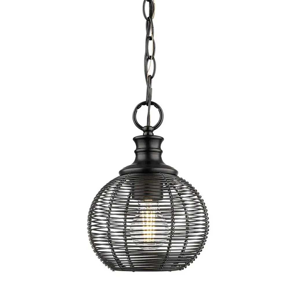 The Calypso collection lends a modern, feminine tone wherever it hangs. The visual effect of the tightly wrapped wires of the dome shade, fitted one above another without overlap, draws the eye. The gaps in the shade offer partial views of a simple lamp. When lit within the wound wires, a bright bulb has a diffused affect.Features:Dimensions:Electrical Specifications: