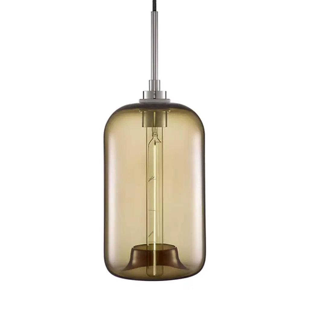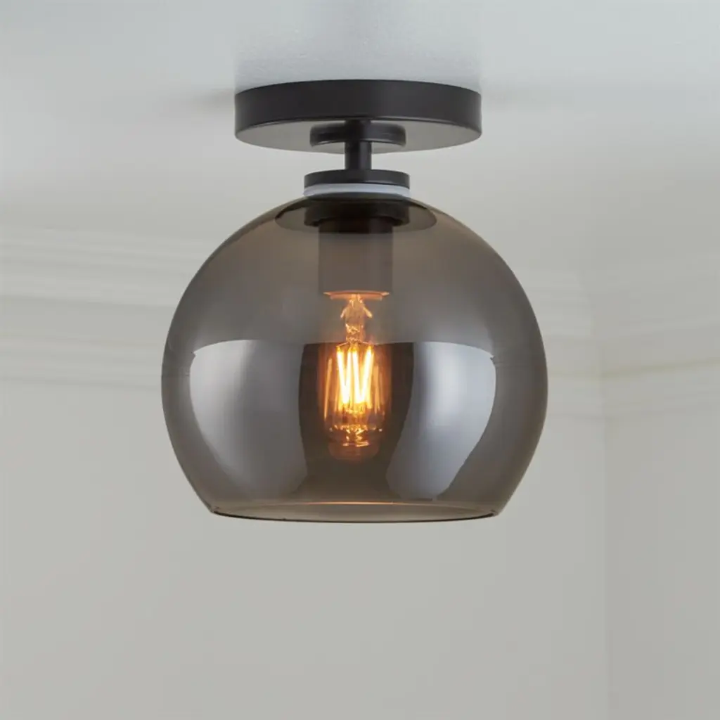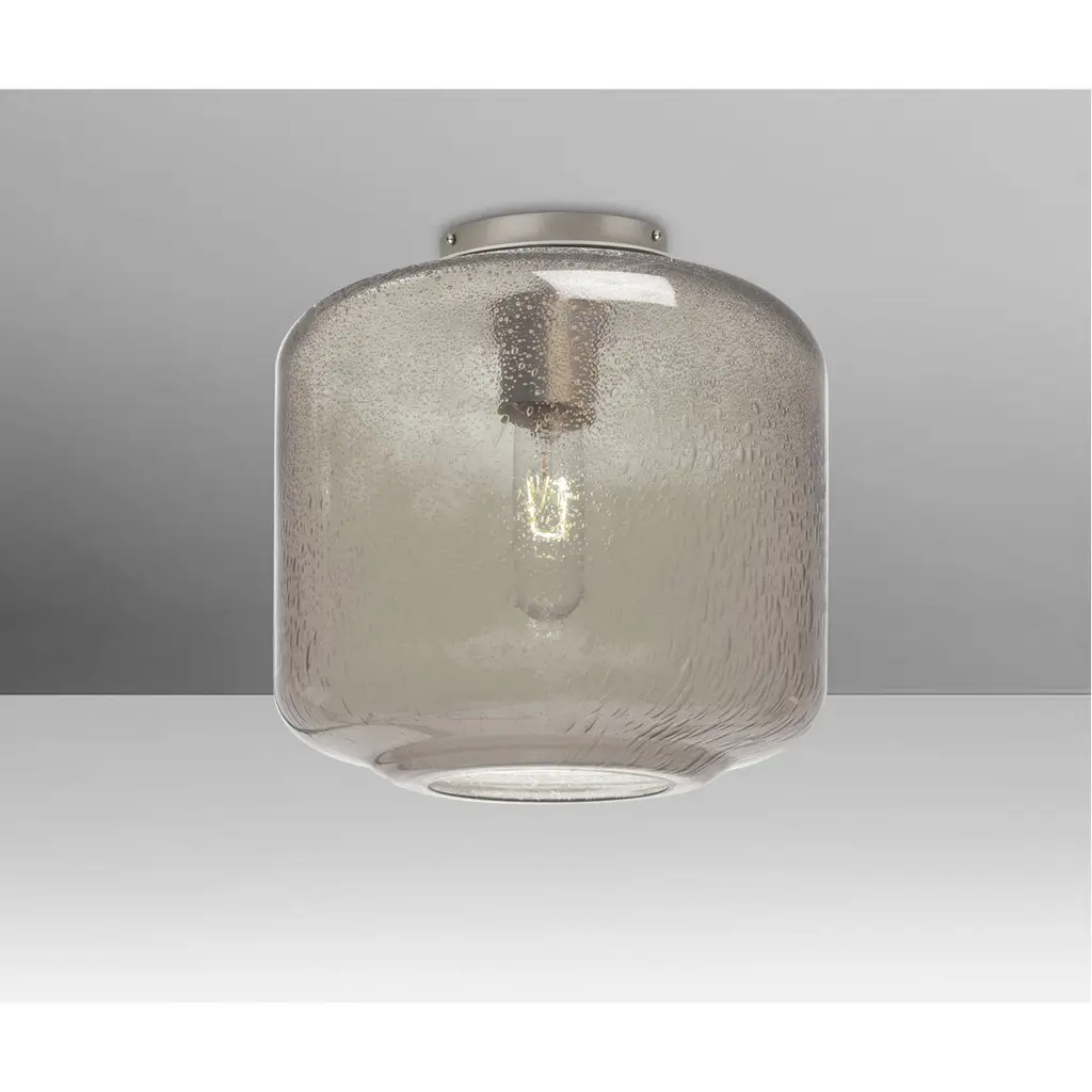 A delightful presence of light designed by Bjarke Ingels Group. The Gople Mini Semi-Flushmount from Artemide is a modern piece crafted using the same tried and true glass-blowing techniques established centuries ago in Venice. Each shade comes from master artisans in Murano, Venice. Glassblowers fill up molten glass with their breath and shape it by hand into an enchanting pill-shaped form. A glaze of seductive color paints across the shade; its composition is made from environmentally friendly materials. Light embraced by the lovely shade filters gently out in a warm, diffused glow.