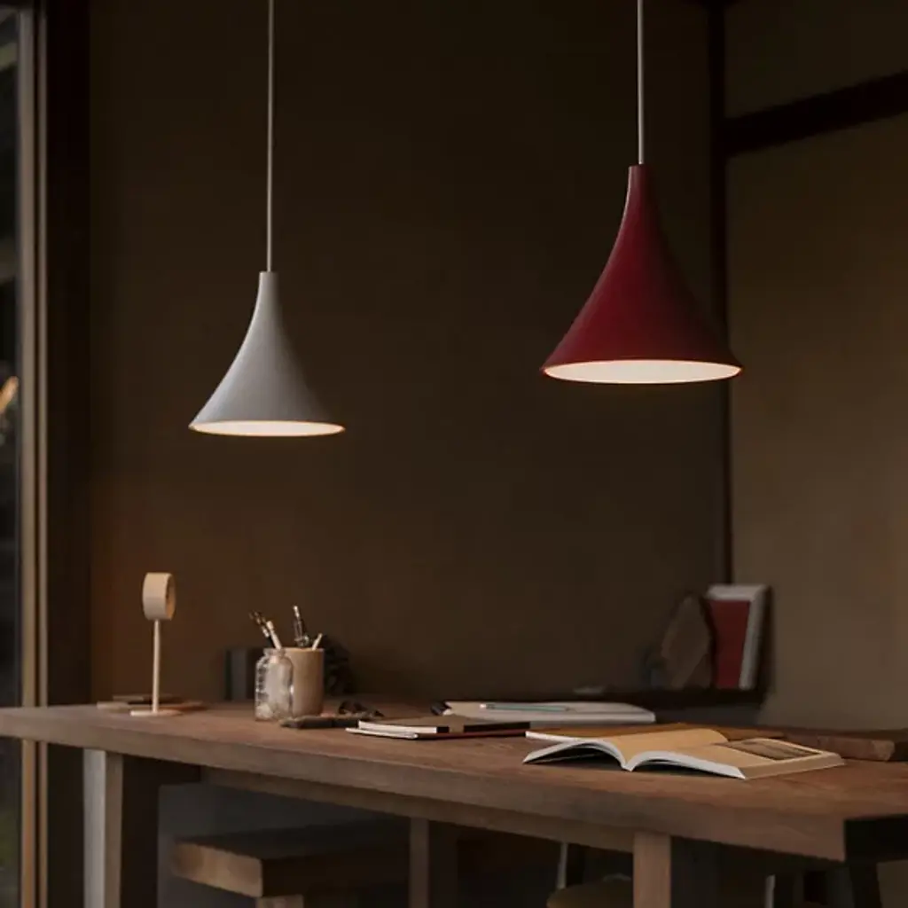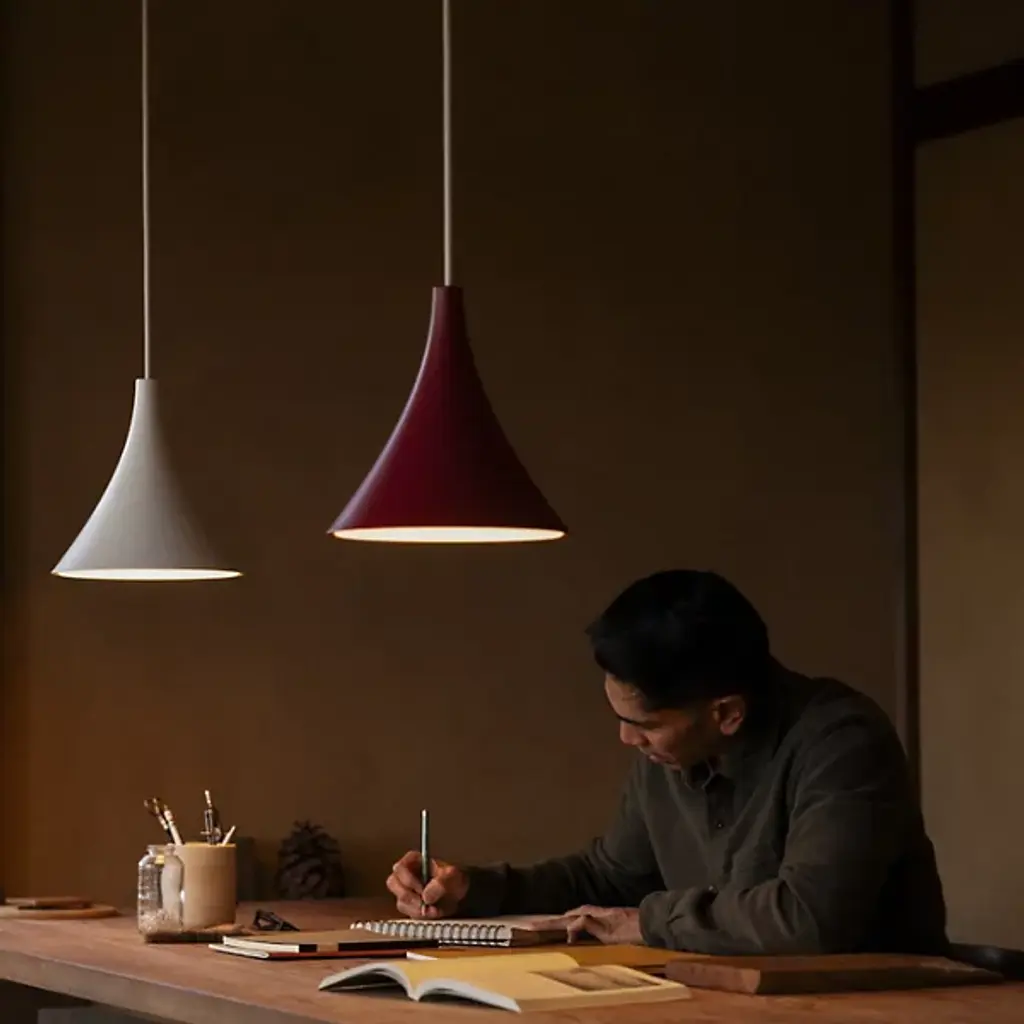 The Gota Pendant from Gantri combines dynamic light and texture, casting ripples of radiance through its patterned diffuser. Inspired by the Portuguese word for "drop," it captures the fleeting beauty of a water droplet's ripple, transforming it into a timeless design. Its diffuser spreads light that echoes the dance of water, complementing styles from minimalist to mid-century modern. Sleek and versatile, Gota adapts to any space, from work areas to serene reading nooks, offering a warm, ambient glow.