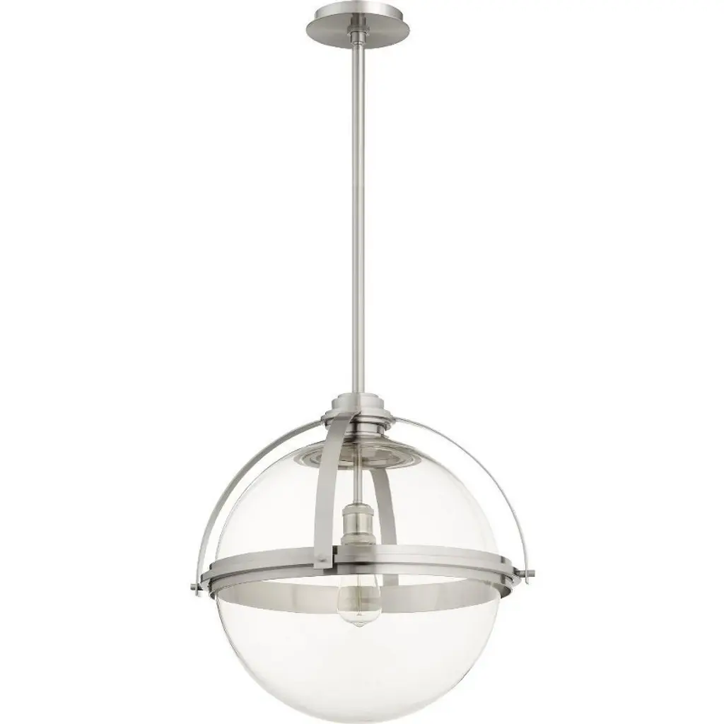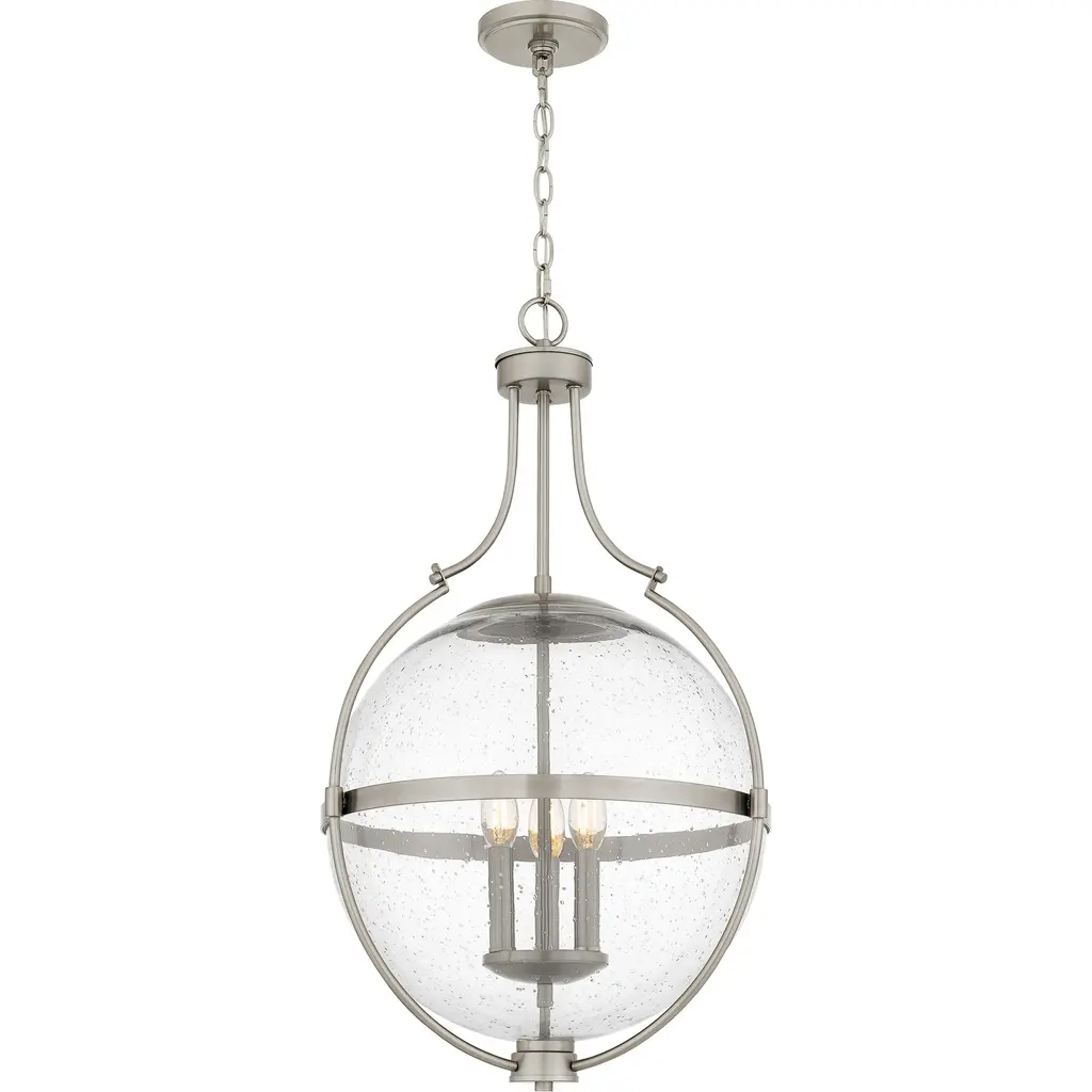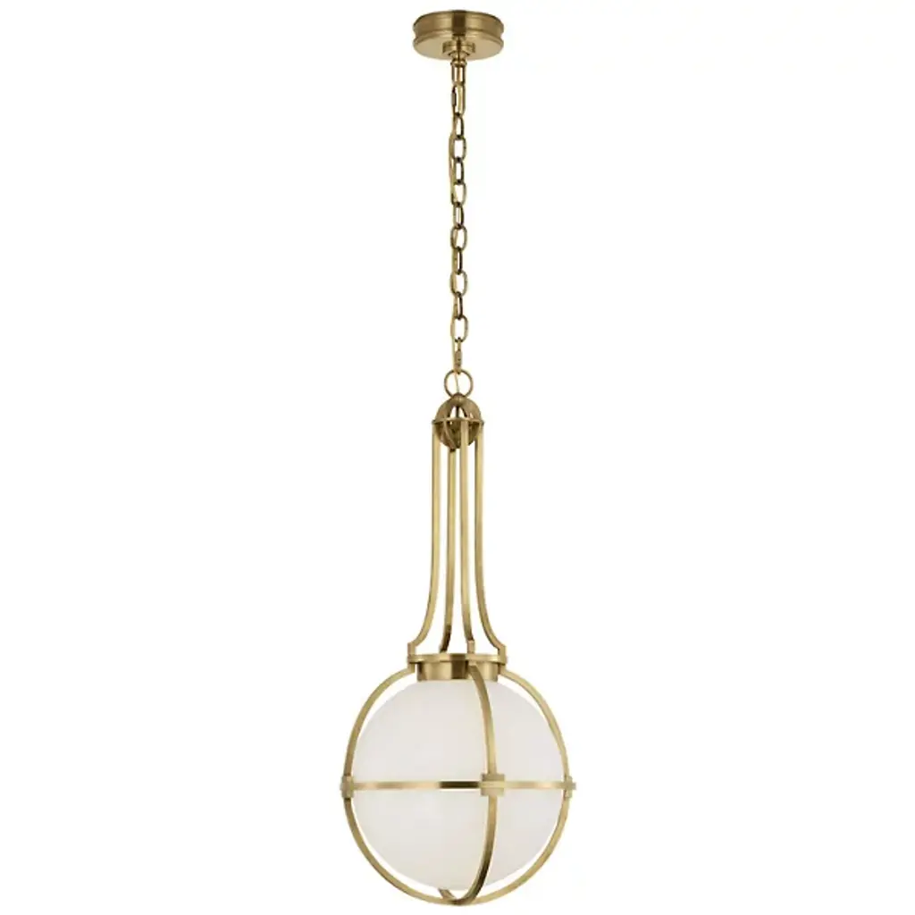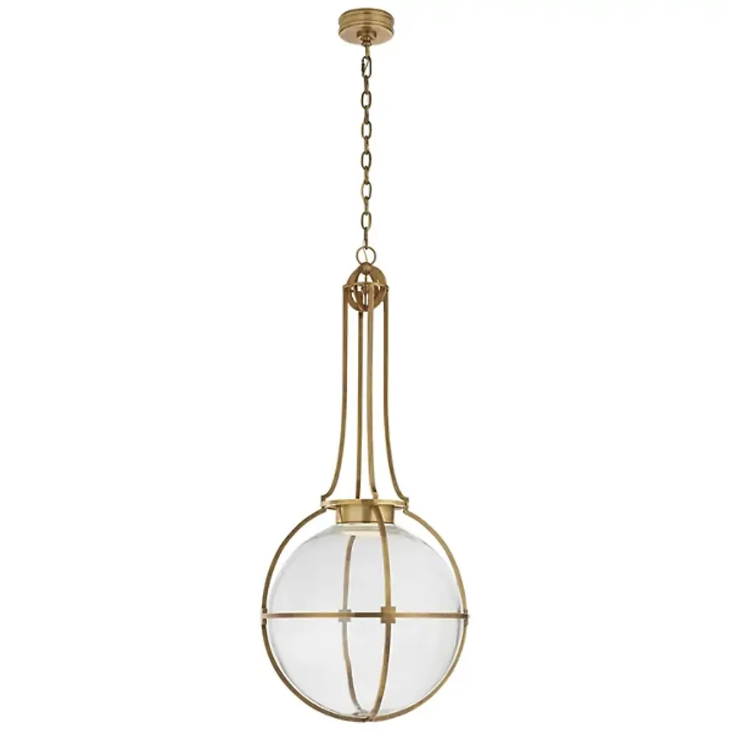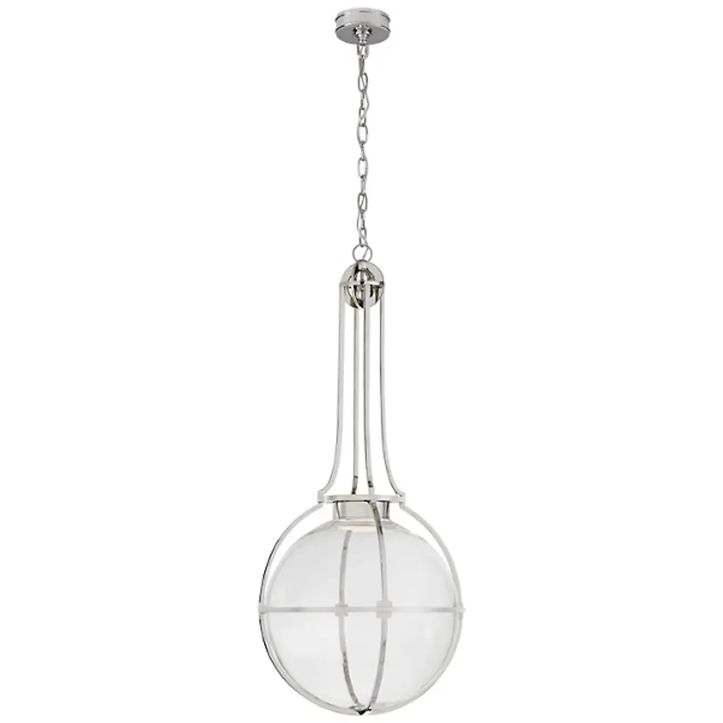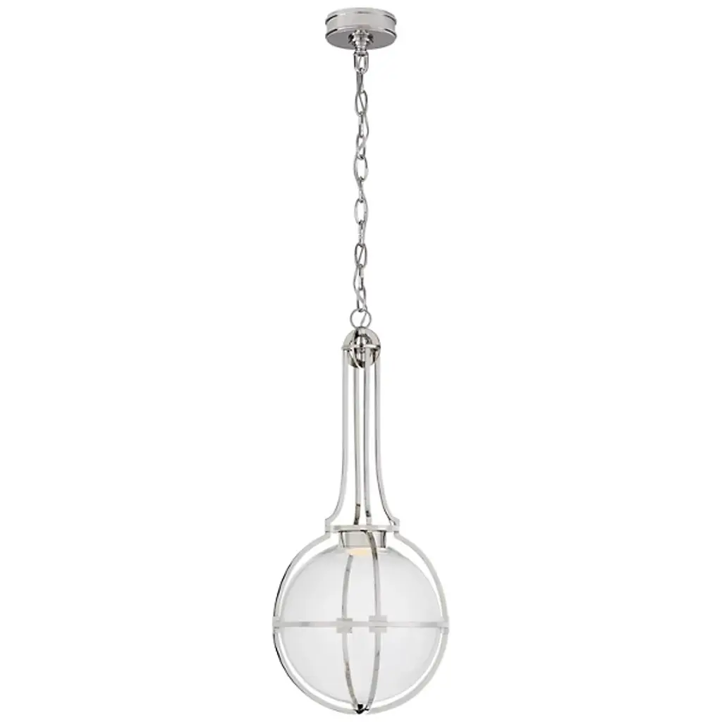 Bring a classy, rain-drop silhouette to the heart of your home with the Gracie Globe Pendant from Visual Comfort Signature, formerly known as Visual Comfort, A soothing, spherical piece acts as a central point between a crisp chainlink and four thin, metal arms that delicately flow downward, wrapping around a larger spherical, clear glass shade. The dedicated, energy-efficient LED shines from a cap resting at the top of the sphere, illuminating the fixture with a clean, warm glow.