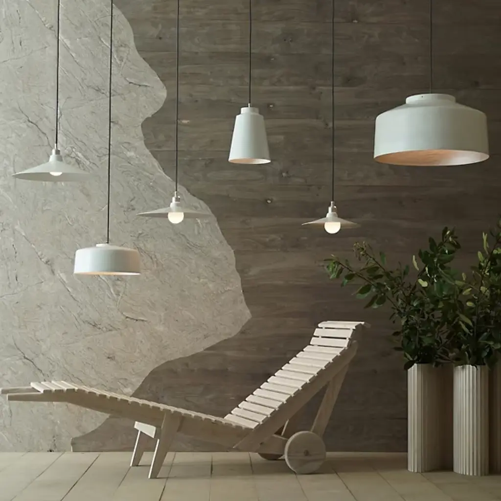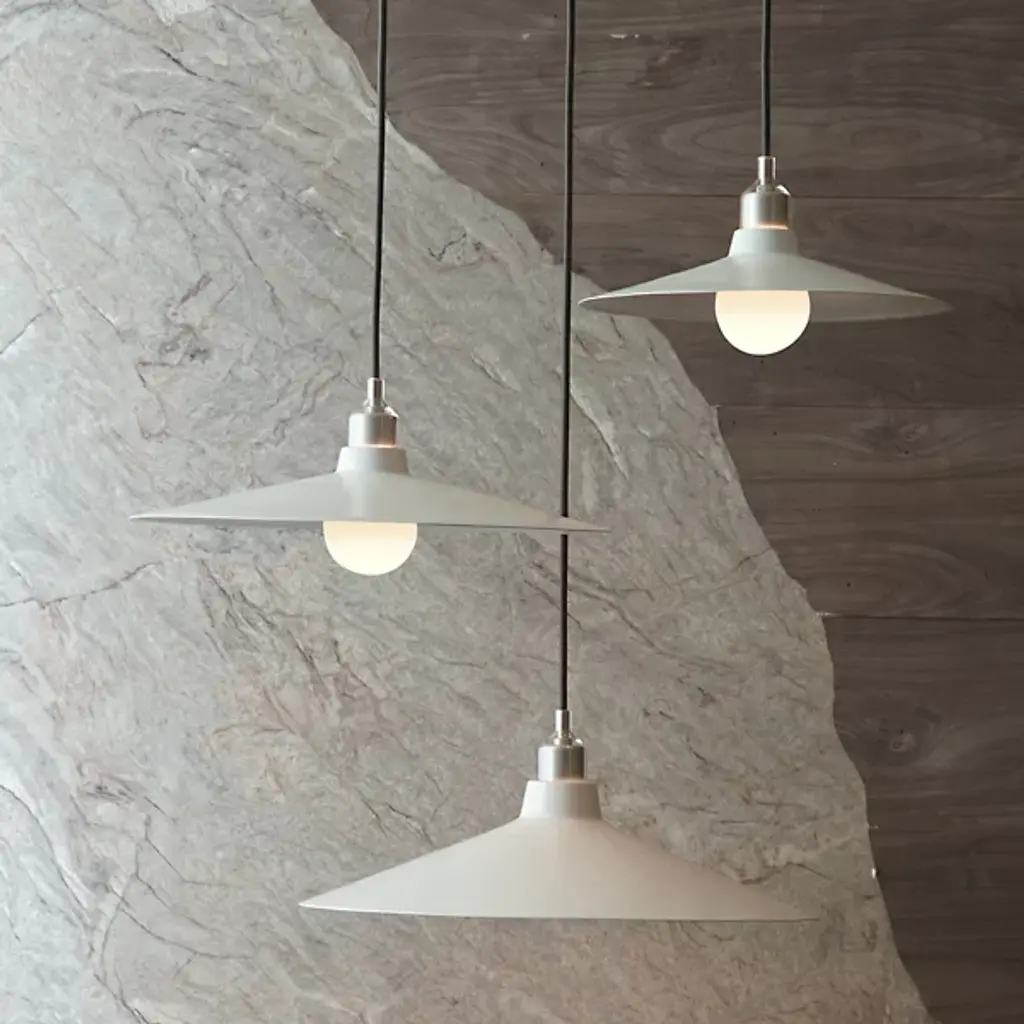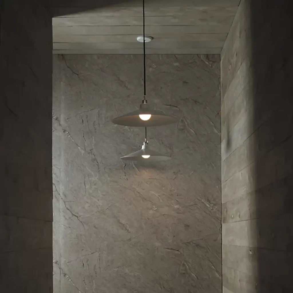 The Grain Pendant from Ravenhill Studio transforms an unexpected construction incident into a celebrated design element. Inspired by a warning about wood grain occasionally imprinting on spun metal, this pendant intentionally embraces that texture for a natural edge. Each aluminum shade is formed over a custom maple mold before being spun into shape. The mold gradually erodes before being sandblasted to raise the natural grain again, meaning each pendant is unique. A flared glass socket glows from within and reflects a unique light texture from the shade, matching precision engineering with an entrancing organic character.