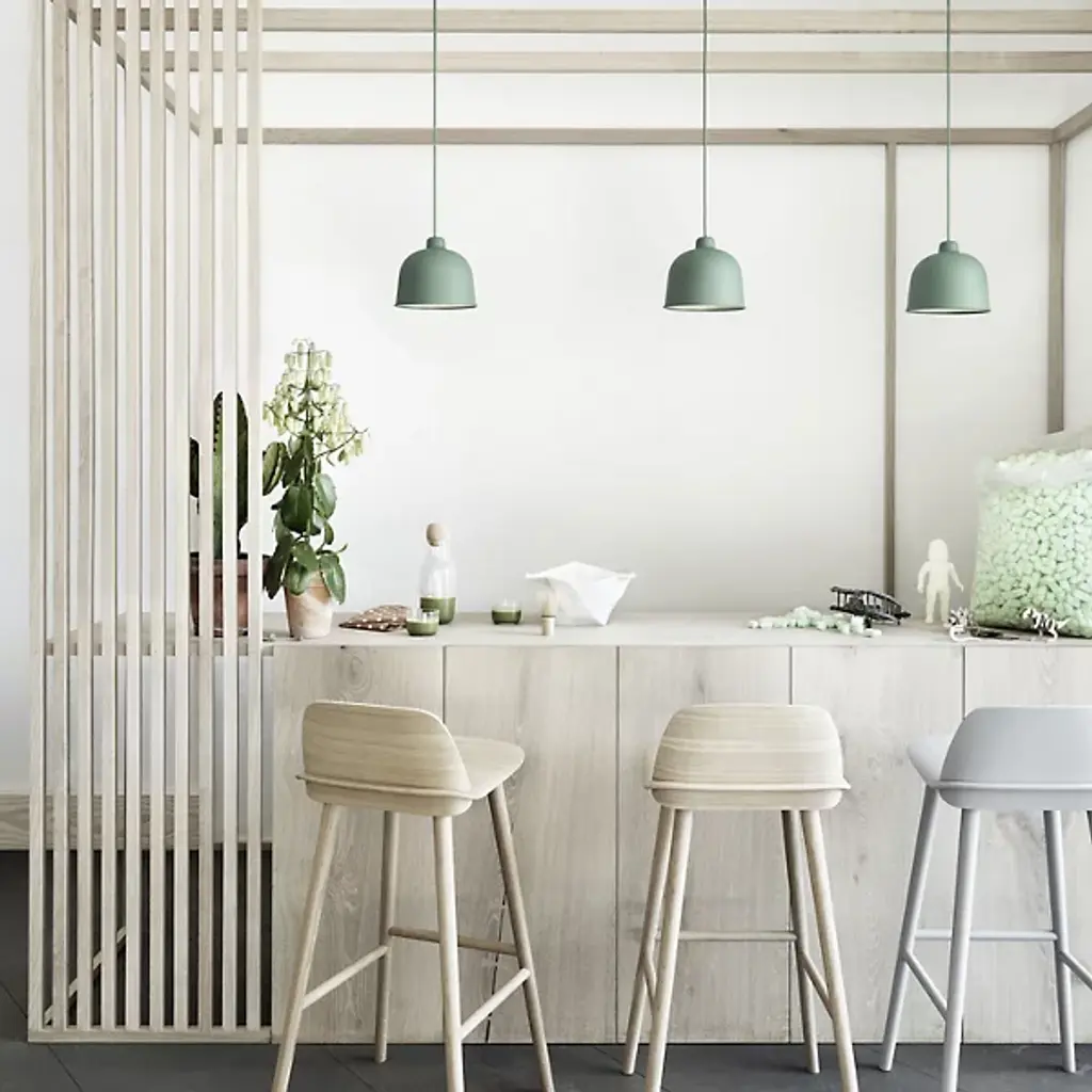 Minimal with touch of modern Scandinavian design, the Grain Pendant Light from Muuto keeps the home's design simple yet stylish. Sporting a simple bell-shaped shade that's texturized by the bamboo and other environmentally friendly materials made under high-pressure casting and complete with a matching rubber cord, the modern pendant light is an easy addition to any modern space. Great for any room in the home, whether that be the kitchen, living room, or dining room the modern pendant will not only enhance the space it occupies with its sleek design, but ensure lasting quality as its bulb is capable of lasting up to 10,000 hours.