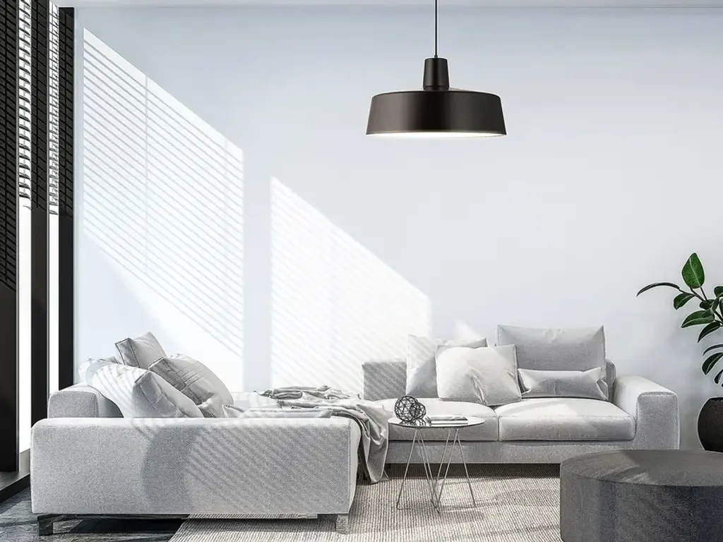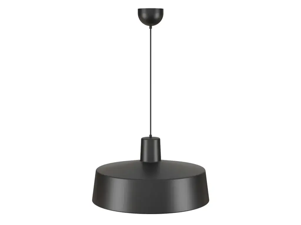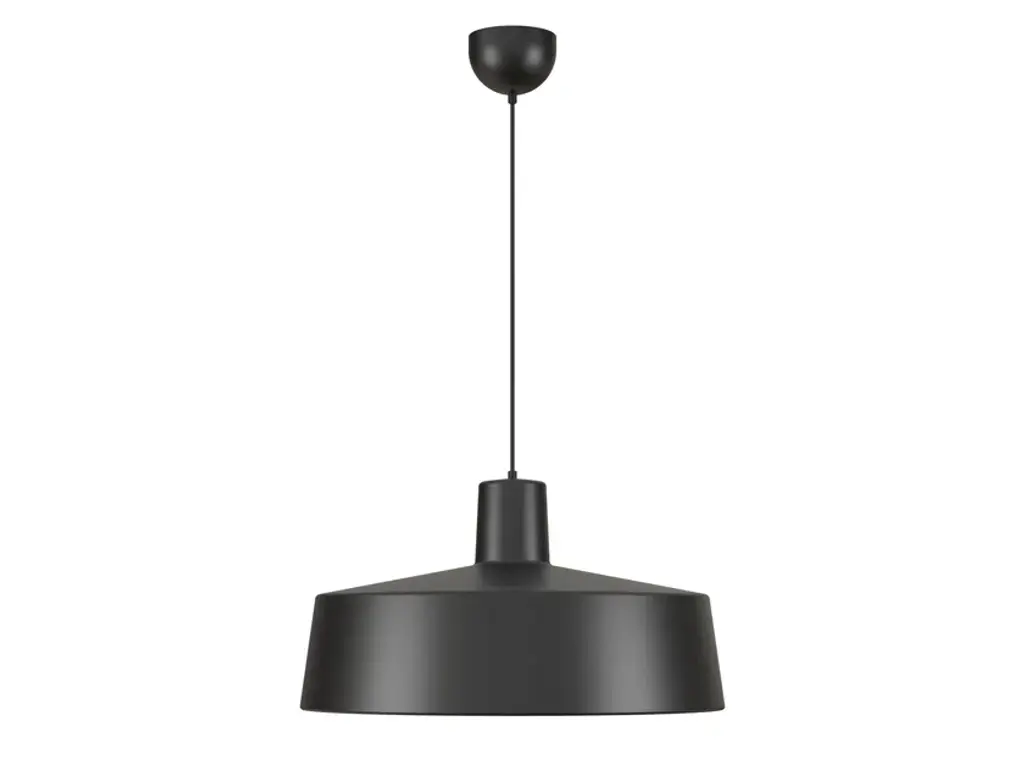Experience the commanding presence of Grande, a formidable pendant light featuring a broad shade and three light bulb sockets. This design ensures abundant lighting power, diffused through its anti-glare visor at the bottom. The pendant is effortlessly installed with its convenient hook, and the sleek matt black finish adds a touch of versatility, making it a fitting choice for various interior styles.3 x E27, max 40WCord length: 3mHook mounting