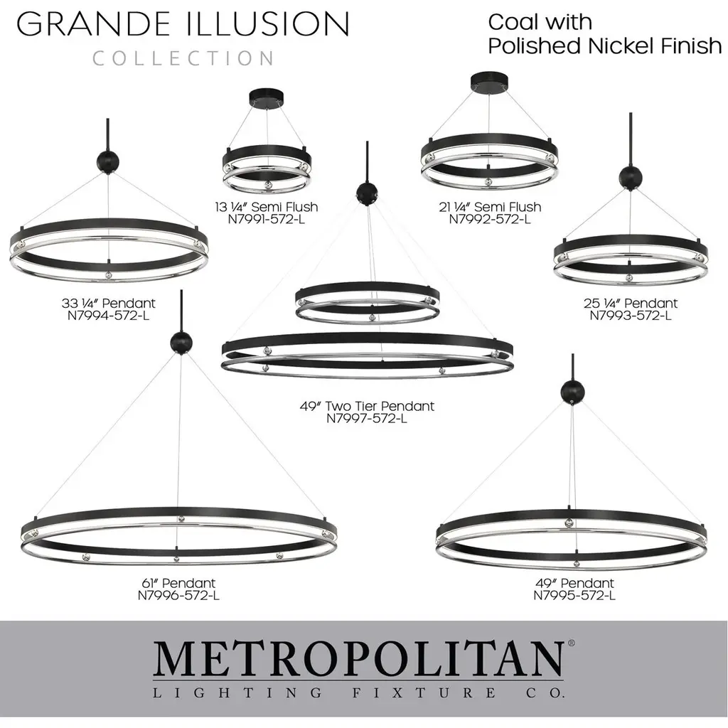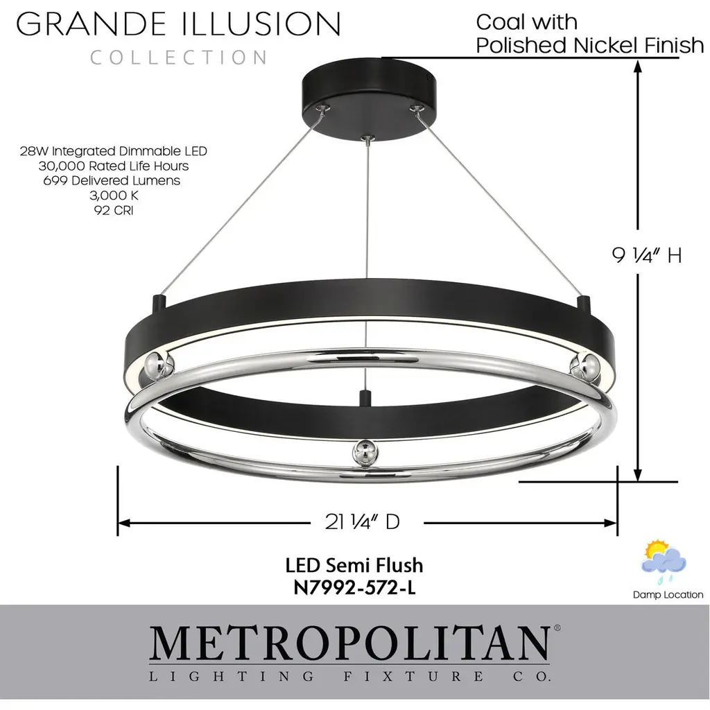 Grande Illusion Led 21.25 Inch Coal With Polished Nickel Pendant Ceiling Light