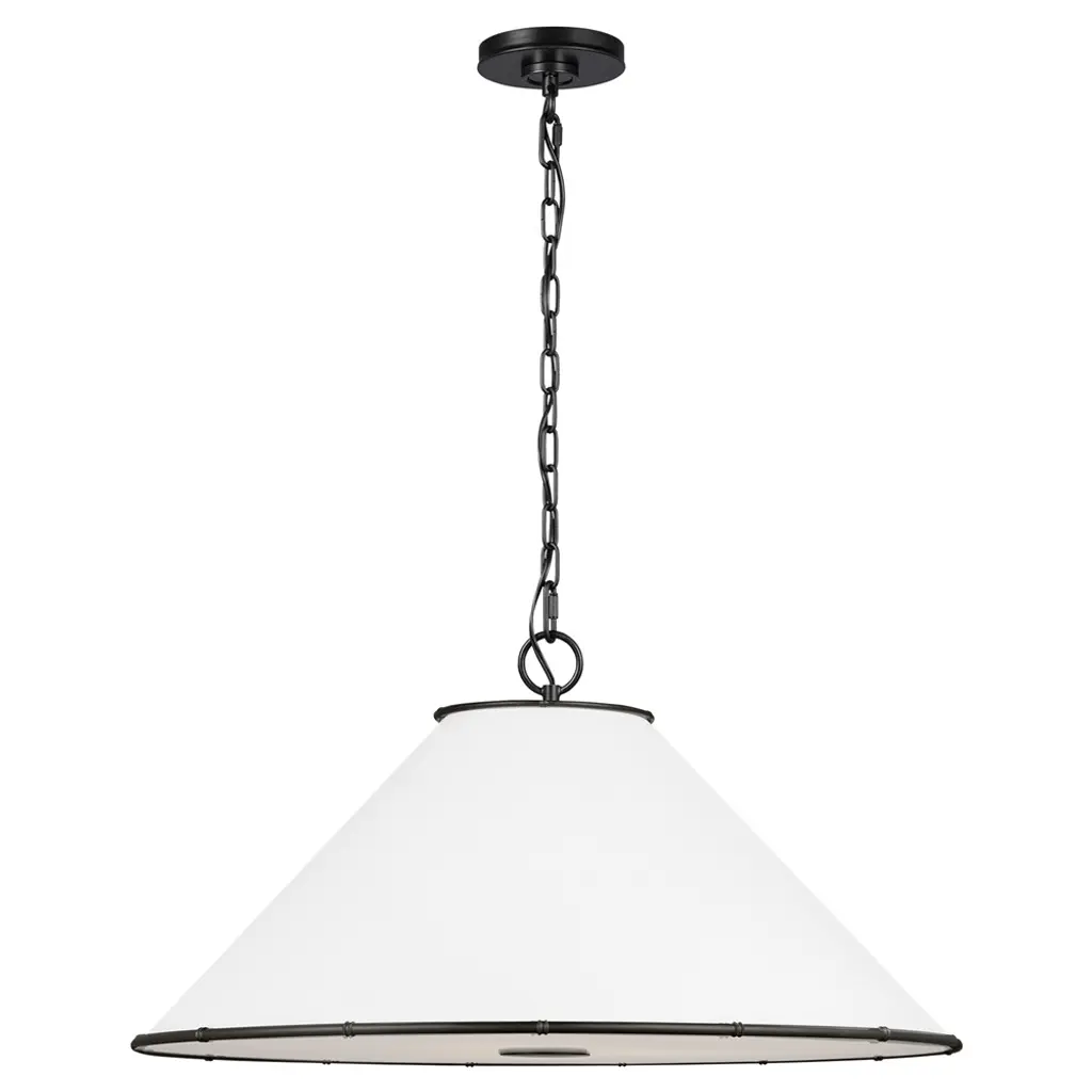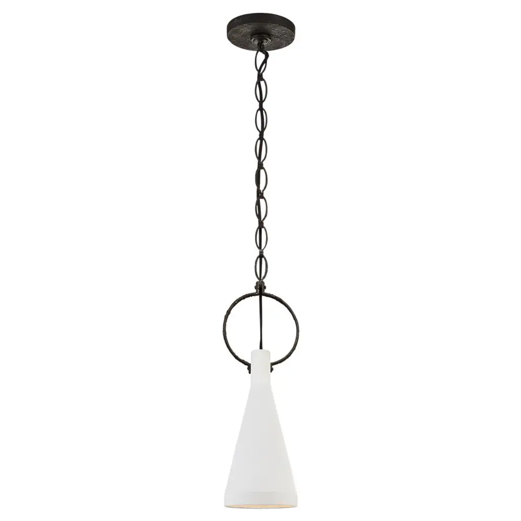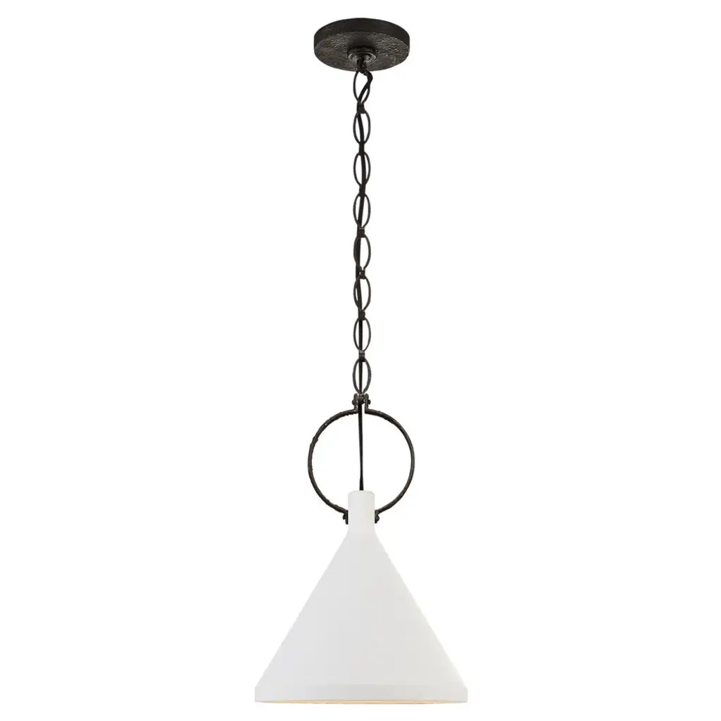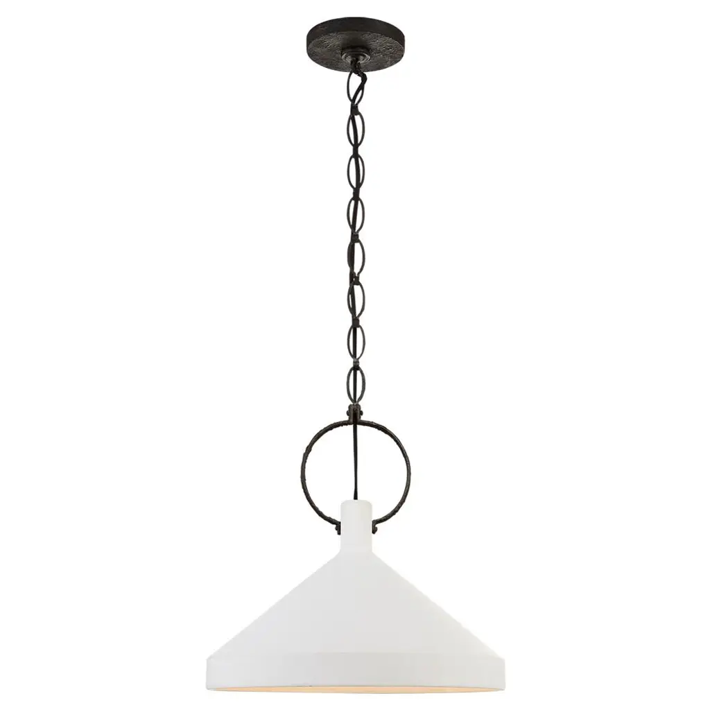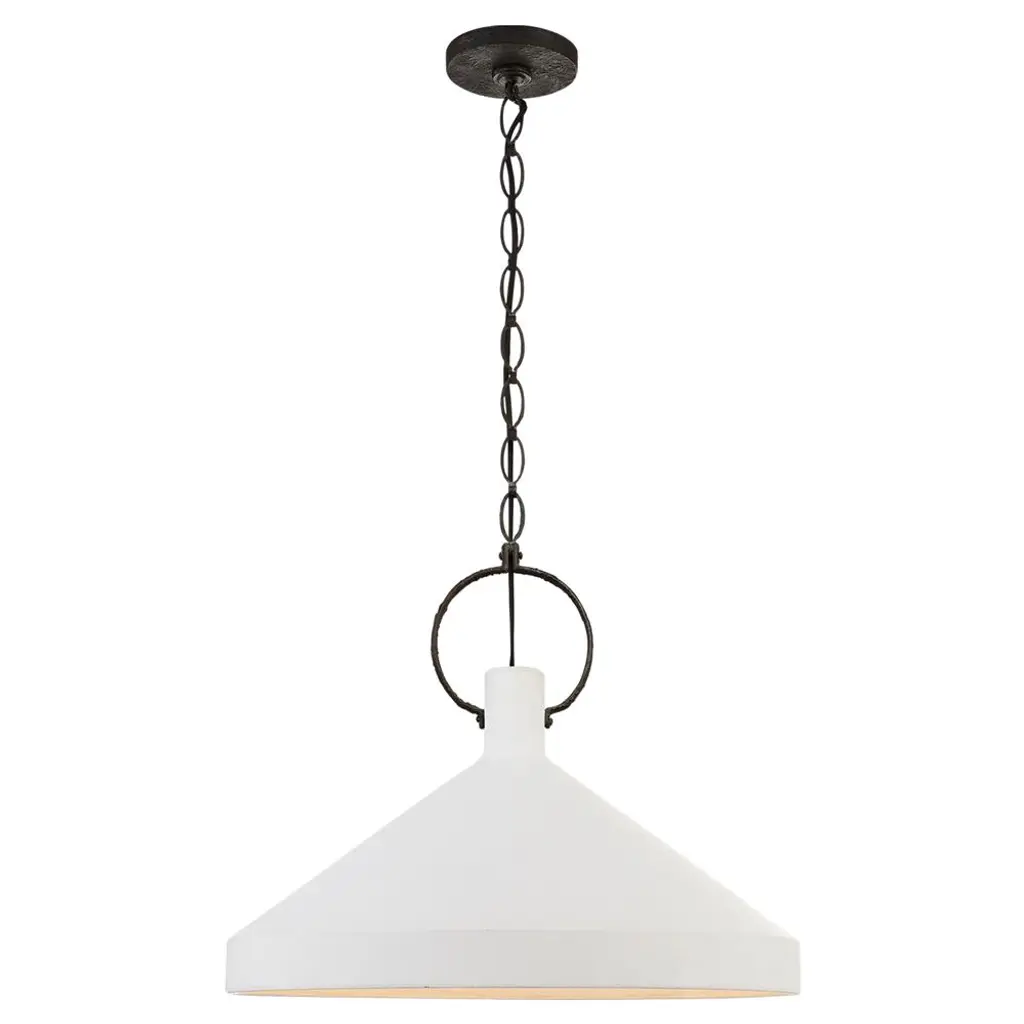 This pendant from designer Suzanne Kasler updates an industrial-inspired form with a plaster white finish. Hardwired.