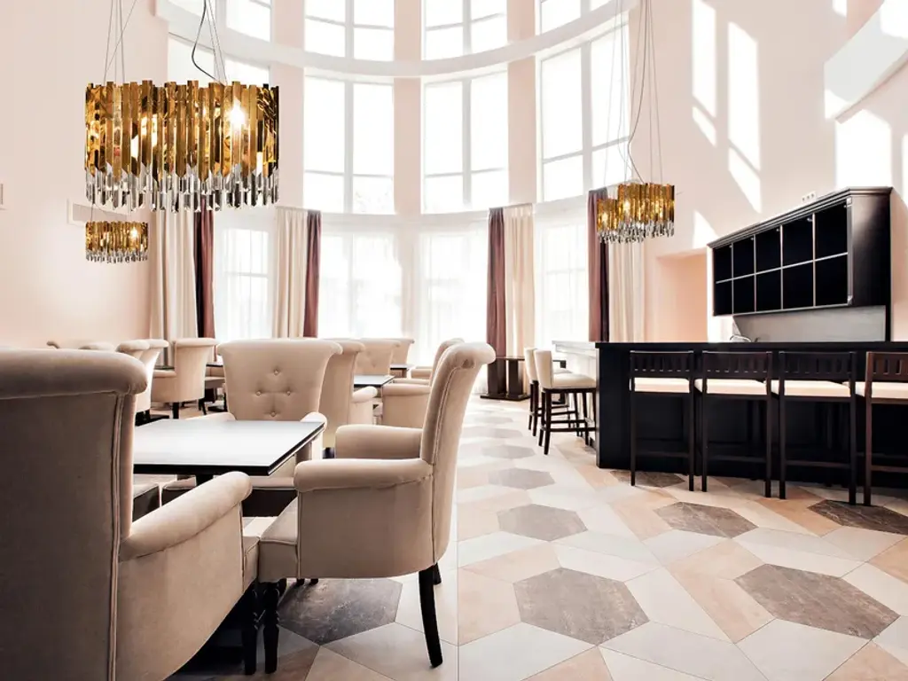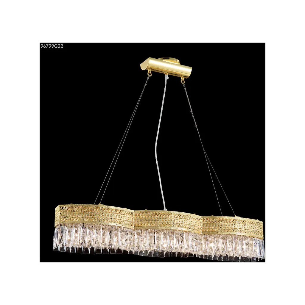 Introducing Grandeur, a breathtaking modern crystal chandelier light that seamlessly marries simplicity with sophistication. Its narrow, elongated crystal strips elegantly intertwine with equally refined gold-colored metal strip details. This irresistible combination not only adds an aesthetic touch to your room but also illuminates it with an attractive and artistic presence. Grandeur is the epitome of contemporary elegance, bringing a touch of luxury to your living space.6 x E14, max 40WCord and wire length 3mGold, crystal