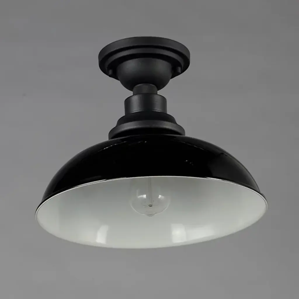 The Granville Semi-Flushmount by Maxim Lighting brings some clean, minimal styling to the classic, industrial-styled pendant silhouette. Nestled close to the ceiling, a smooth, rounded aluminum shade is supported by a circular canopy and a short down rod that has a layered look and textured details. Knurled sockets elevate the simple build of this functional design, and the single, visible bulb within the shade casts plenty of illumination onto its surroundings.