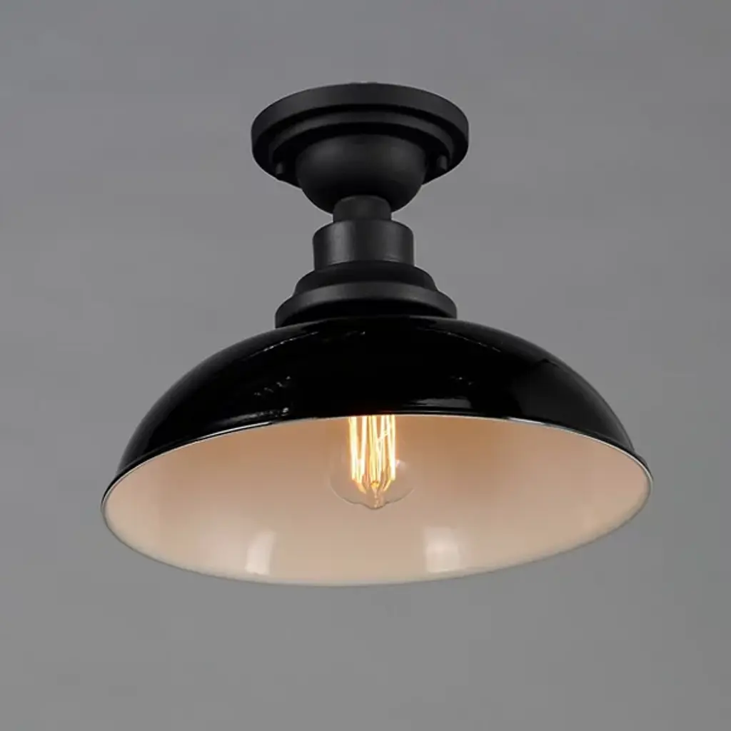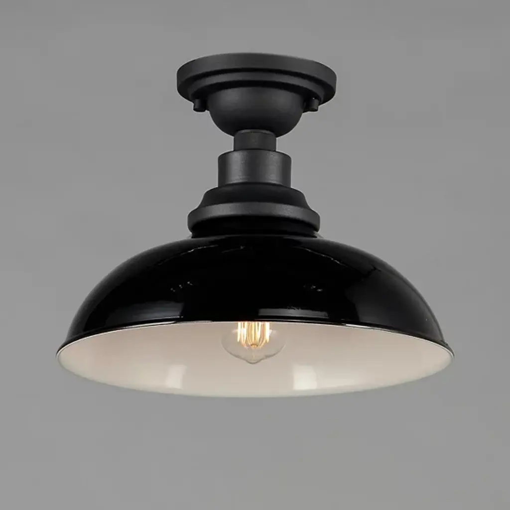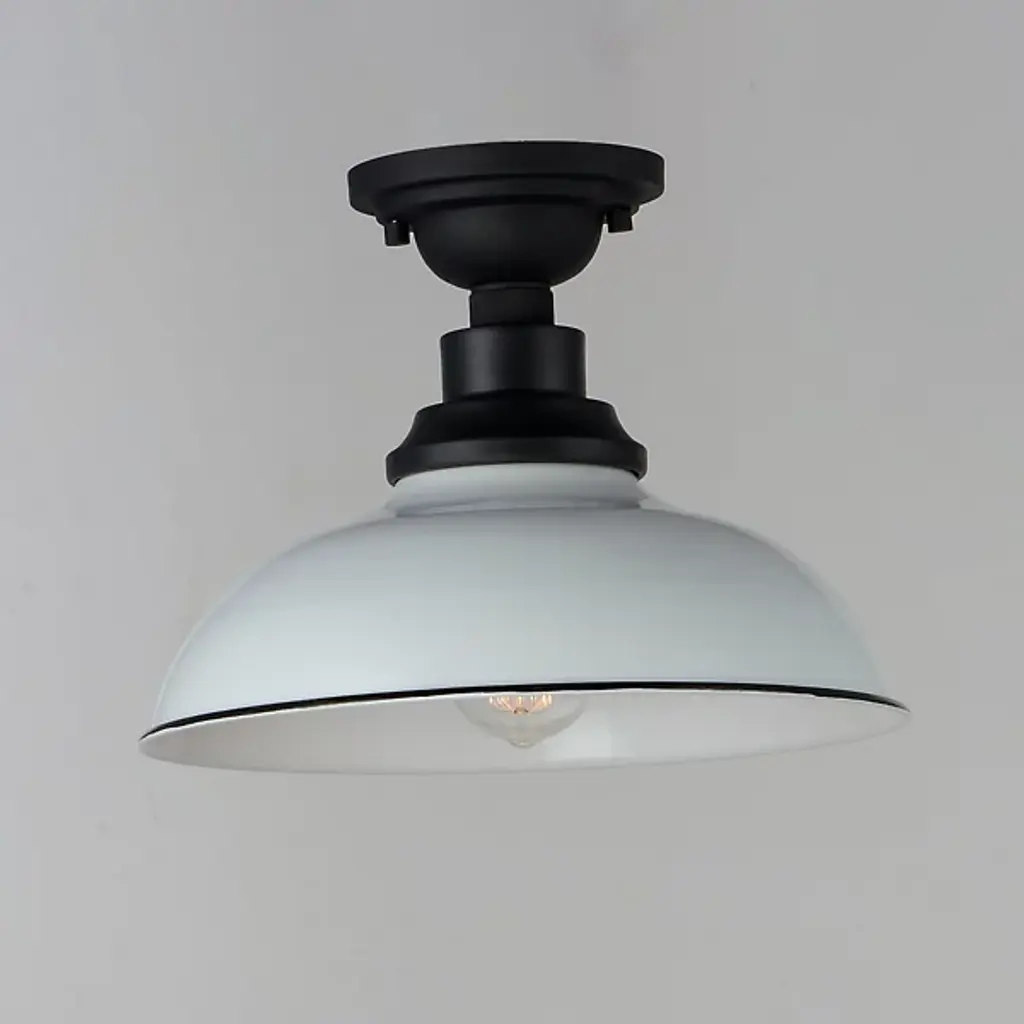 The Granville Semi-Flushmount by Maxim Lighting brings some clean, minimal styling to the classic, industrial-styled pendant silhouette. Nestled close to the ceiling, a smooth, rounded aluminum shade is supported by a circular canopy and a short down rod that has a layered look and textured details. Knurled sockets elevate the simple build of this functional design, and the single, visible bulb within the shade casts plenty of illumination onto its surroundings.