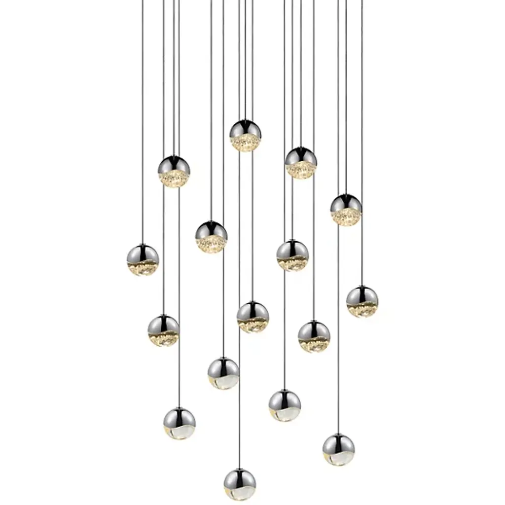 A collective display of orbital magic, the SONNEMAN Lighting Grapes LED 16-Light Square Pendant brings a celestial quality to its new lighting collection. Mounted by a perfectly squared, multipoint canopy, each infinity wave is made from metal, which hangs from a 10’ adjustable cable cord. Seen from the middle or above, the crystal appears clear with a subtle luminance. Moving below, the crystal facets become increasingly apparent, refracting the light into a dazzling radiance. Projects ample LED illumination for eco-friendly light deliverance.