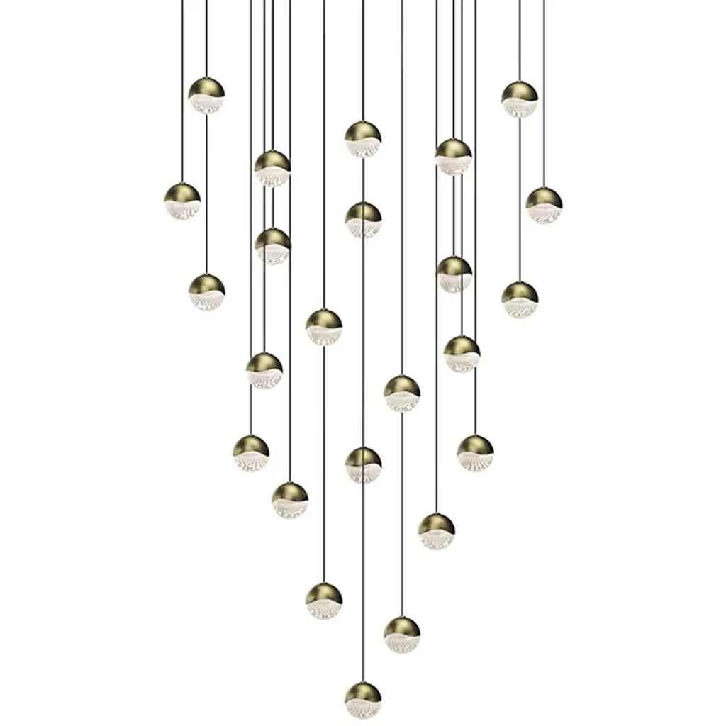Like stars gathered from the constellations above and wrought together for a spectacular visual sensation, the SONNEMAN Lighting Grapes LED 24-Light Round Multipoint Pendant brings a celestial aura down to Earth. Seen from the middle or above, the crystal appears clear with a subtle luminance. Moving below, the crystal facets become increasingly apparent, refracting the light into a dazzling radiance. Each globe is capped with a metal infinity wave and attached to a 10’ adjustable cable cord.