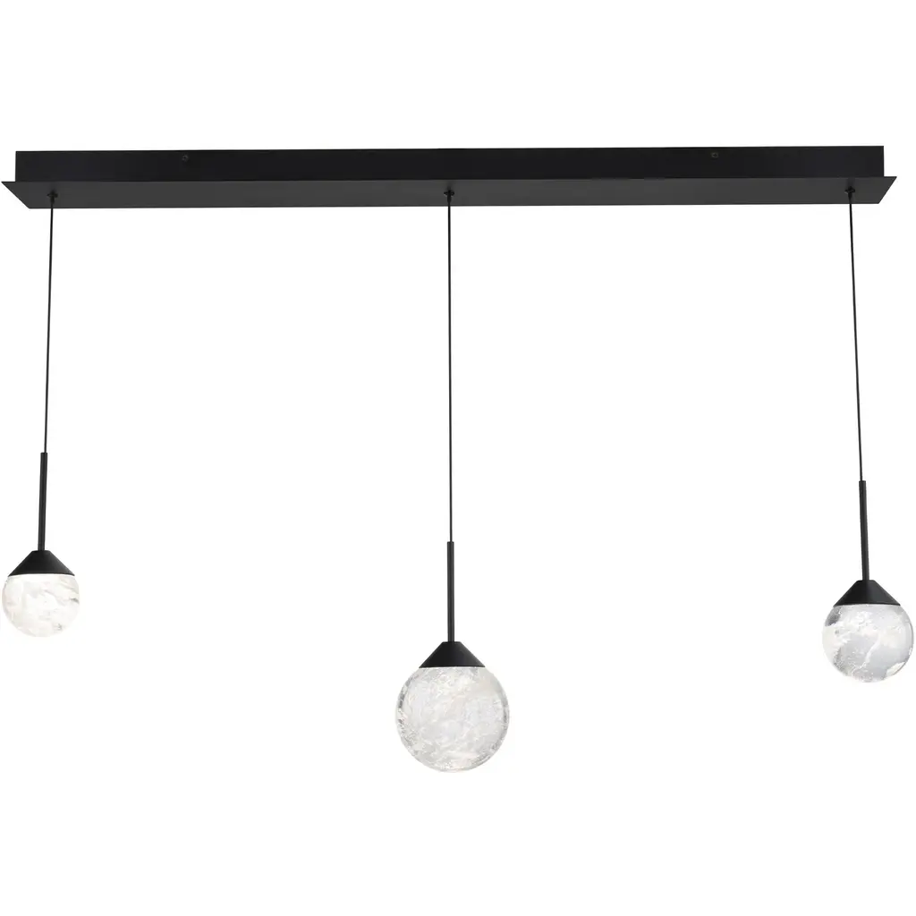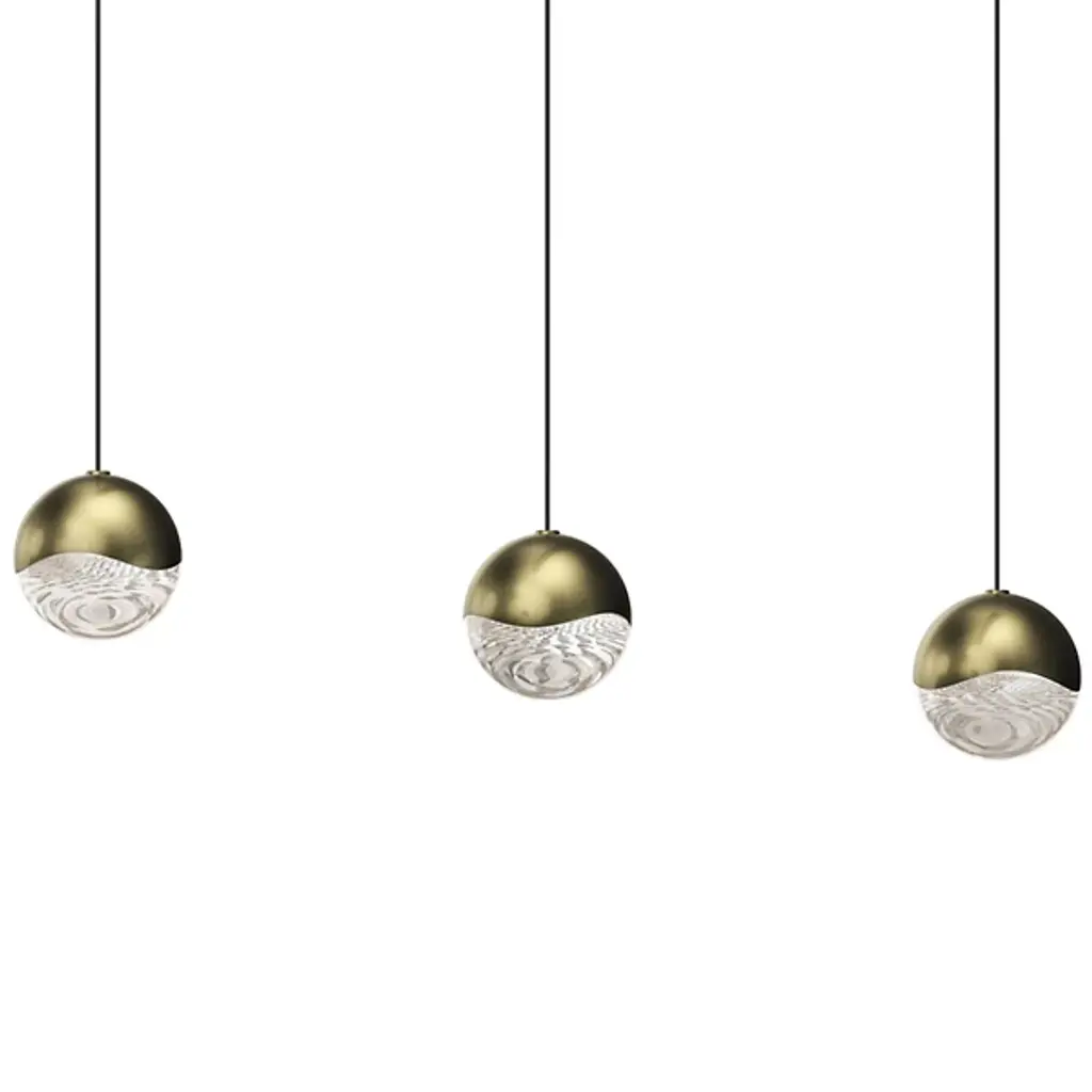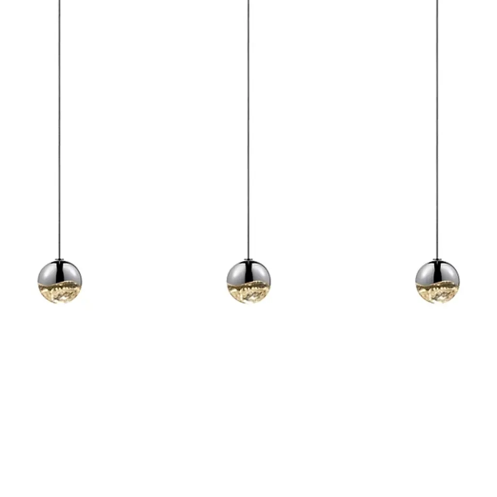 An array of collective beauty and refractive light play, the SONNEMAN Lighting Grapes LED 3-Light Rectangular Multipoint Pendant brings a joyous display of crystal to illuminate your interior and visual experience. With the orbs made of glass infused with crystal facets, the Grapes LED 3-Light Rectangular Multipoint Pendant globes appear clear with slight luminance. Moving downward, these facets become more apparent and refract light into a stunning radiance. Globes are capped with a signature infinity wave and suspended by adjustable heavy-duty cable cords.