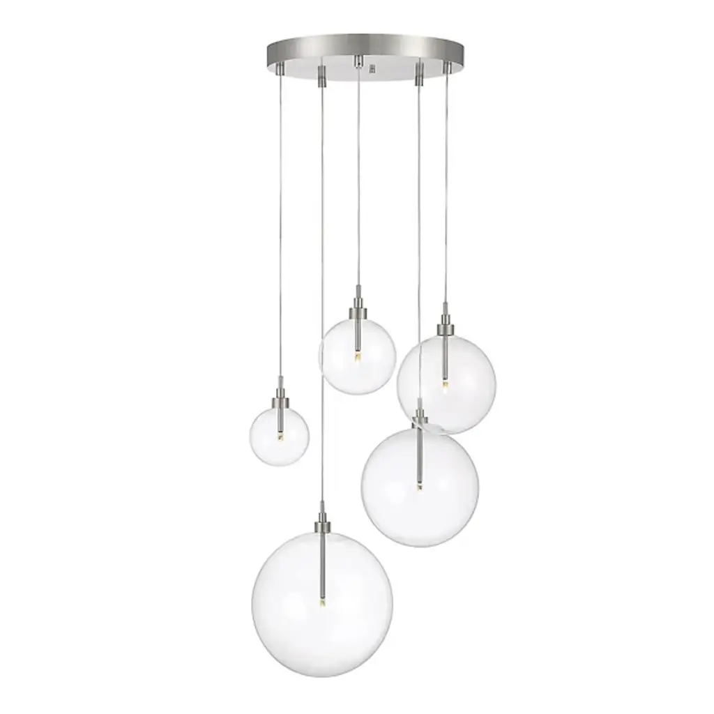 Beautiful crystal orbs wrought together for a fascinating visual experience, the SONNEMAN Lighting Grapes LED 9-Light Round Multipoint Pendant revels the future standard of modern lighting. From top to center, globes appear to be clear. Going further down, the globes' crystal facets further reveal themselves with higher luminance. Each globe is also capped with a metal infinity wave and attached to a 10’ adjustable cable cord. Powered by LED illumination, the Grapes LED 9-Light Round Multipoint Pendant is an eco-friendly source of interior visual enhancement.