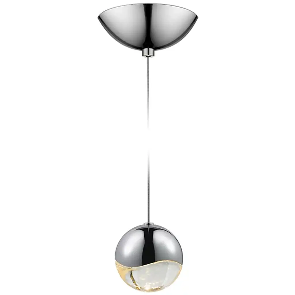 Like an enchanted crystal ball that seemingly floats through time and space, the SONNEMAN Lighting Grapes LED Mini Pendant revels and reveals the future standard of designer lighting. With subtle LED luminance the crystal facets become increasingly apparent, refracting the light into a dazzling radiance. Its semi-sphere is made from metal and crystal, which is mounted by a metal canopy and adjustable cord.